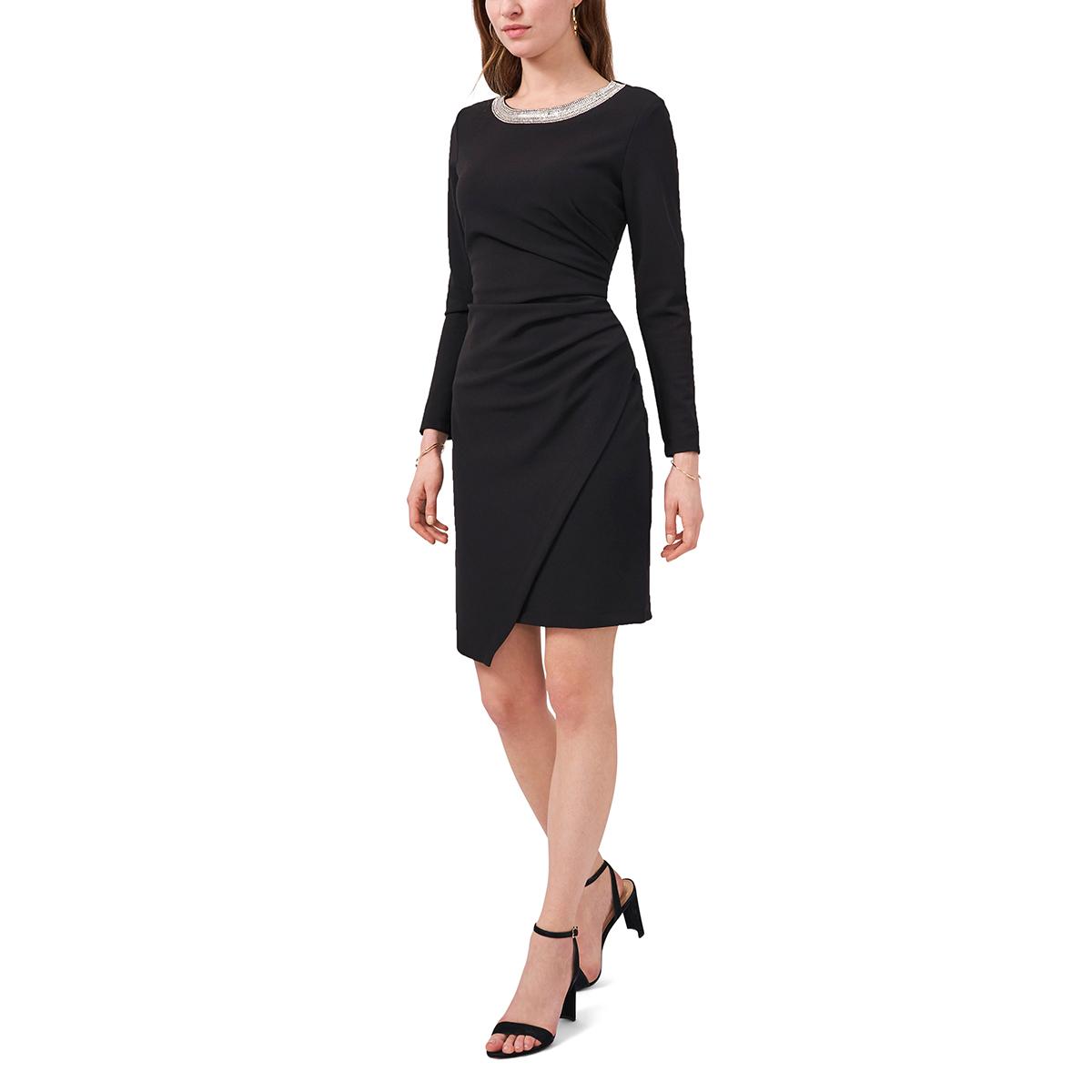 Womens MSK Long Sleeve Crepe Side Ruched Neck Trim Dress