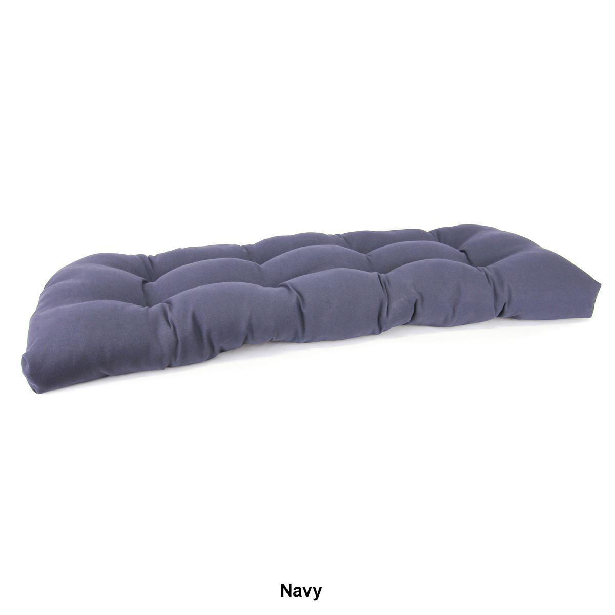 This Jordan Manufacturing wicker settee cushion in a solid color is a great way to revive your outdoor décor with an added pop of color. This cushion has a knife edge and is tufted for an extra classy look. It is constructed of spun polyester fabric and blown fiber.