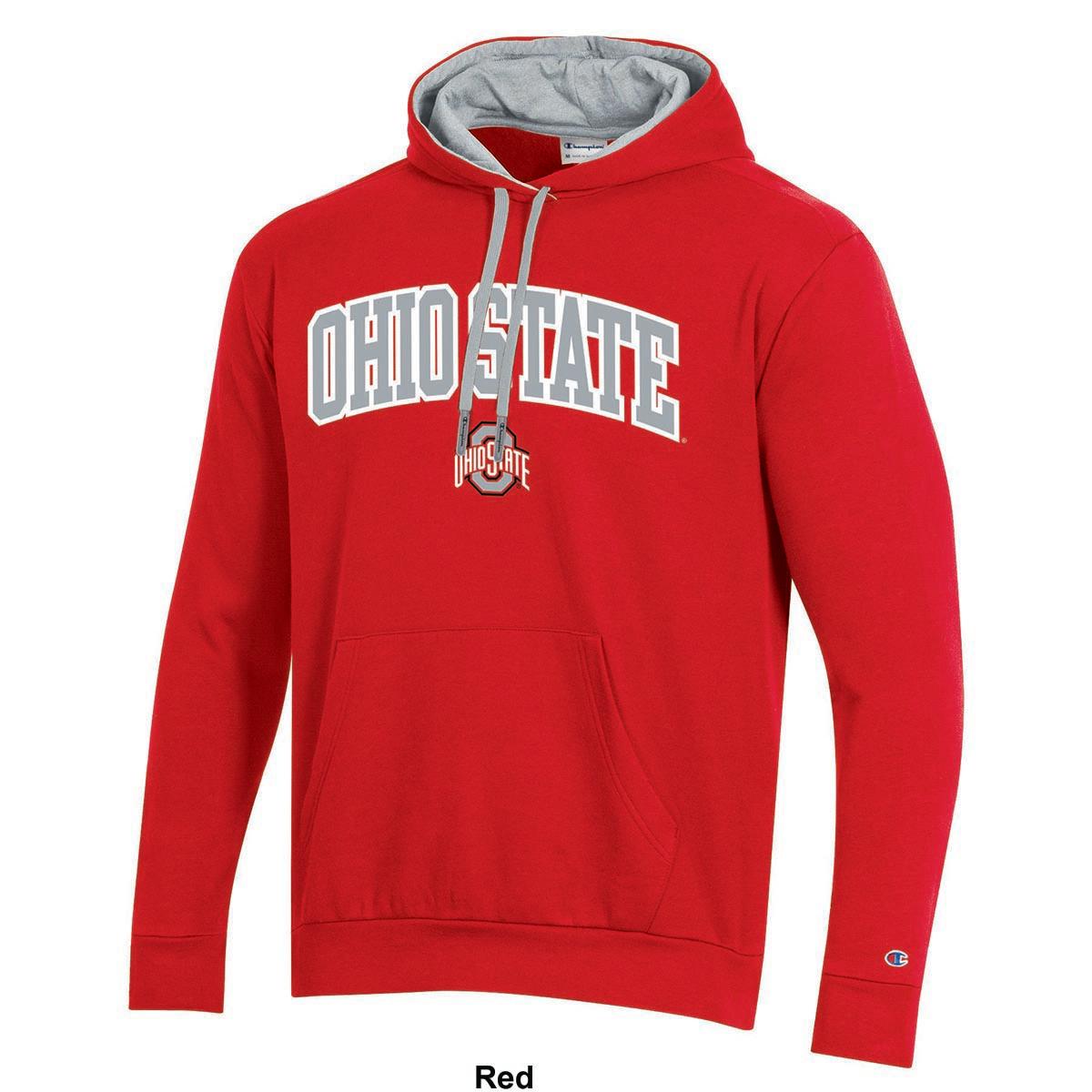 Description Show off your school spirit with this Mens Champion® Ohio State pullover hoodie. The hoodie features long sleeves, an attached hood with a drawstring, a kangaroo...