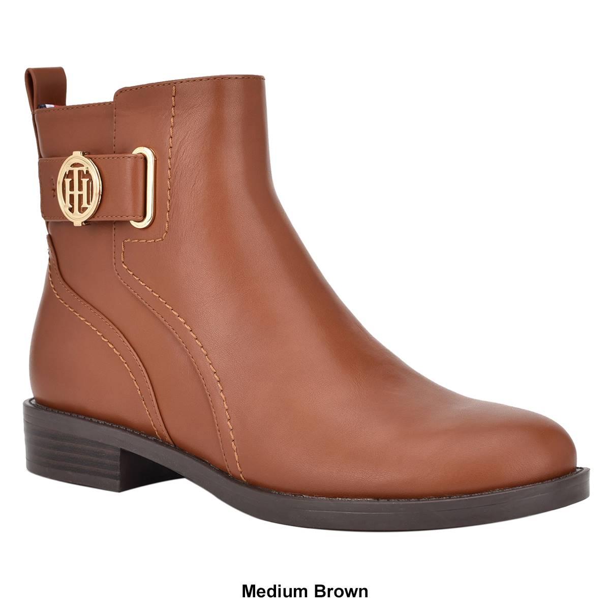 Description These chic Womens Tommy Hilfiger Rezin2 ankle boots are exactly what your closet needs. With gold-tone logo hardware, these shoes include a side zip closure, round...