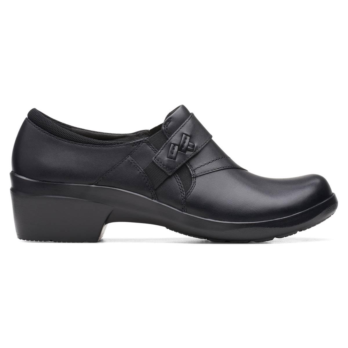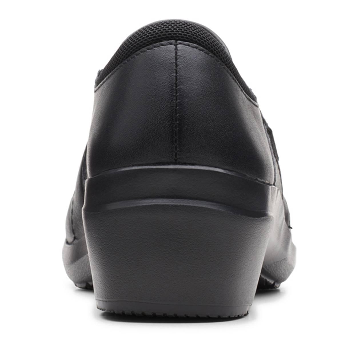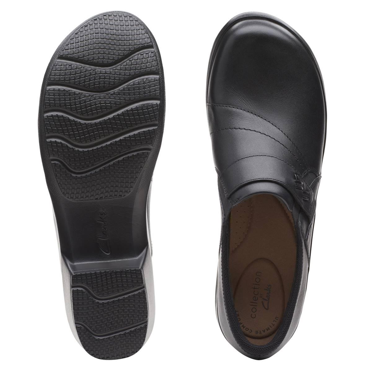 Description These Womens Clarks® Angie Pearl black leather slip-on loafers are perfect for casual, work, and weekend wear. Luxurious, lasting cushioning comes from the Ultimate...