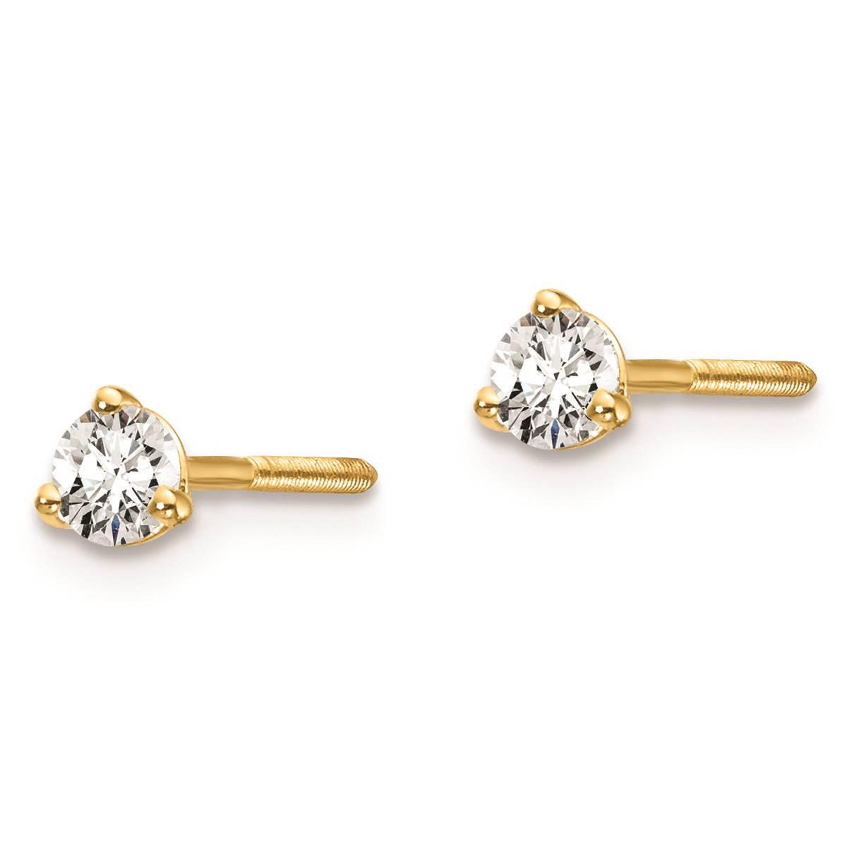 This classic Pure Fire 14kt. yellow gold 1/5ctw. diamond screwback earrings feature a captivating 3-prong set of lab-grown diamond of 3mm each with a polished finish for gleaming shine. Lab-grown diamonds are of VS/SI clarity and D-E-F color grade weighing 0.206ctw. Complete any look day or night with these post and screw-back secured dazzling earrings.