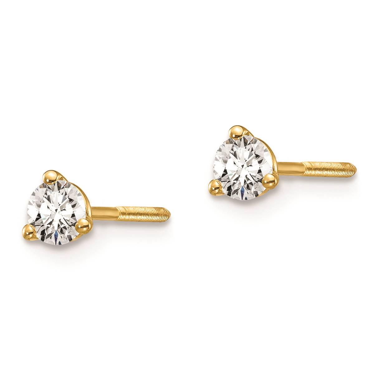 This classic Pure Fire 14kt. yellow gold 1/4ctw. screwback diamond earrings feature captivating 3-prong set lab-grown diamond of 3.2mm each with a polished finish for gleaming shine. Lab-grown diamonds are of SI1/SI2 clarity and G-H-I color grade weighing 0.25 ctw. Complete any look day or night with these post and screw-back secured dazzling earrings.