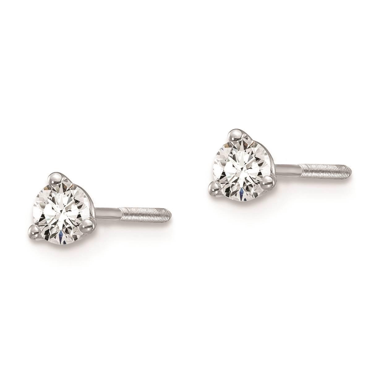This classic Pure Fire 14kt. white gold 1/4ctw. screwback diamond earrings feature captivating 3-prong set lab-grown diamond of 3.2mm each with a polished finish for gleaming shine. Lab-grown diamonds are of VS/SI clarity and D-E-F color grade weighing 0.25ctw. Complete any look day or night with these post and screw-back secured dazzling earrings.