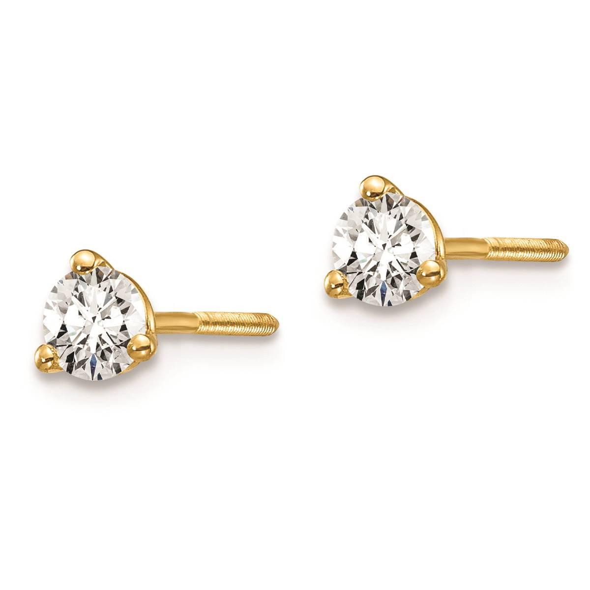 Description This classic Pure Fire 14kt. gold 1/3ctw. certified diamond screw earrings feature captivating 3-prong set lab-grown diamond of 3.5mm each with a polished finish for...