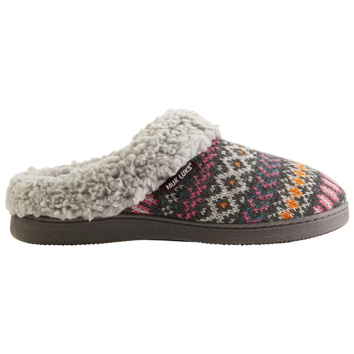 Slip into these Womens MUK LUKS® Suzanne clog slippers and let the comfy foam insole relax your feet. The soft faux fur lining keeps your toes warm this cold weather season.