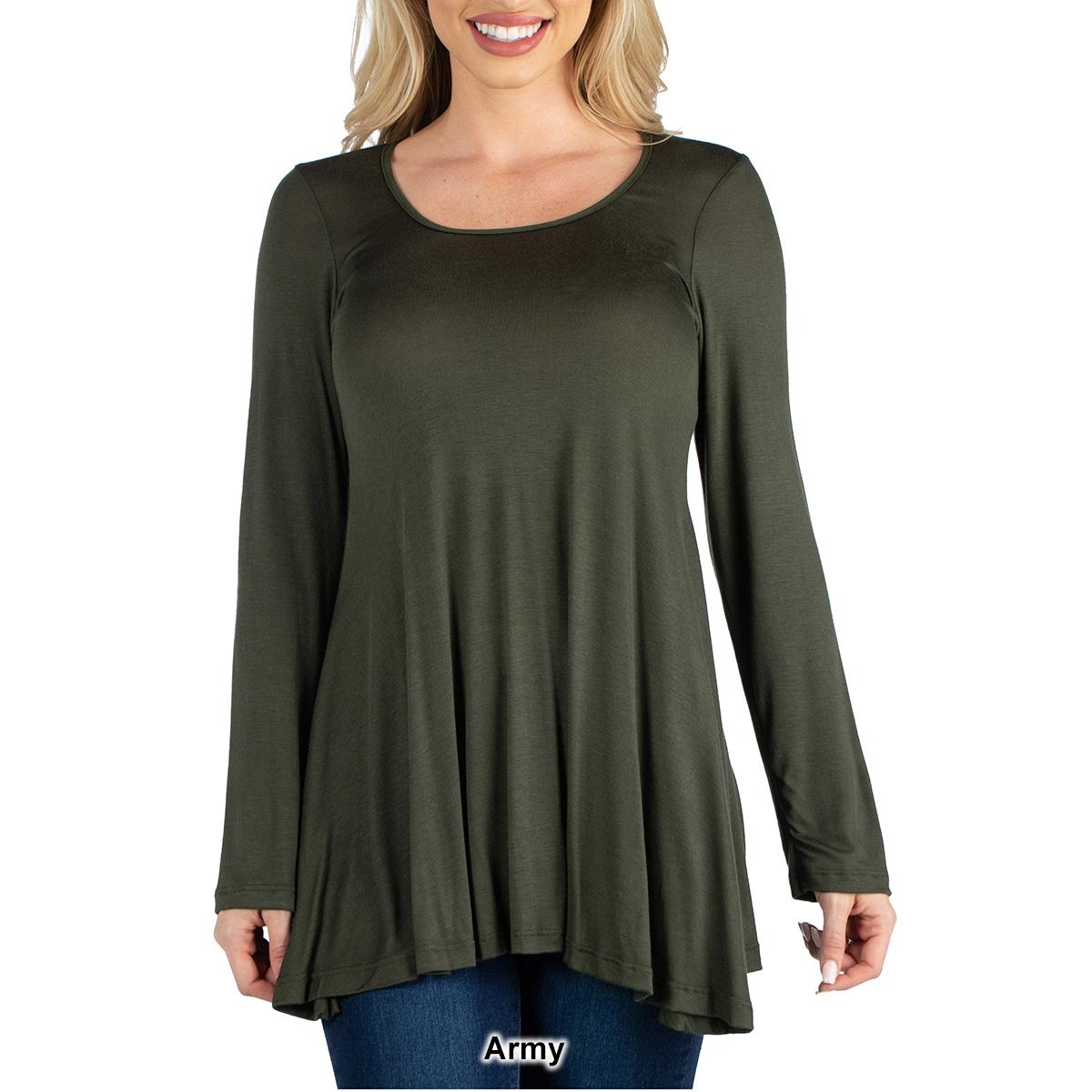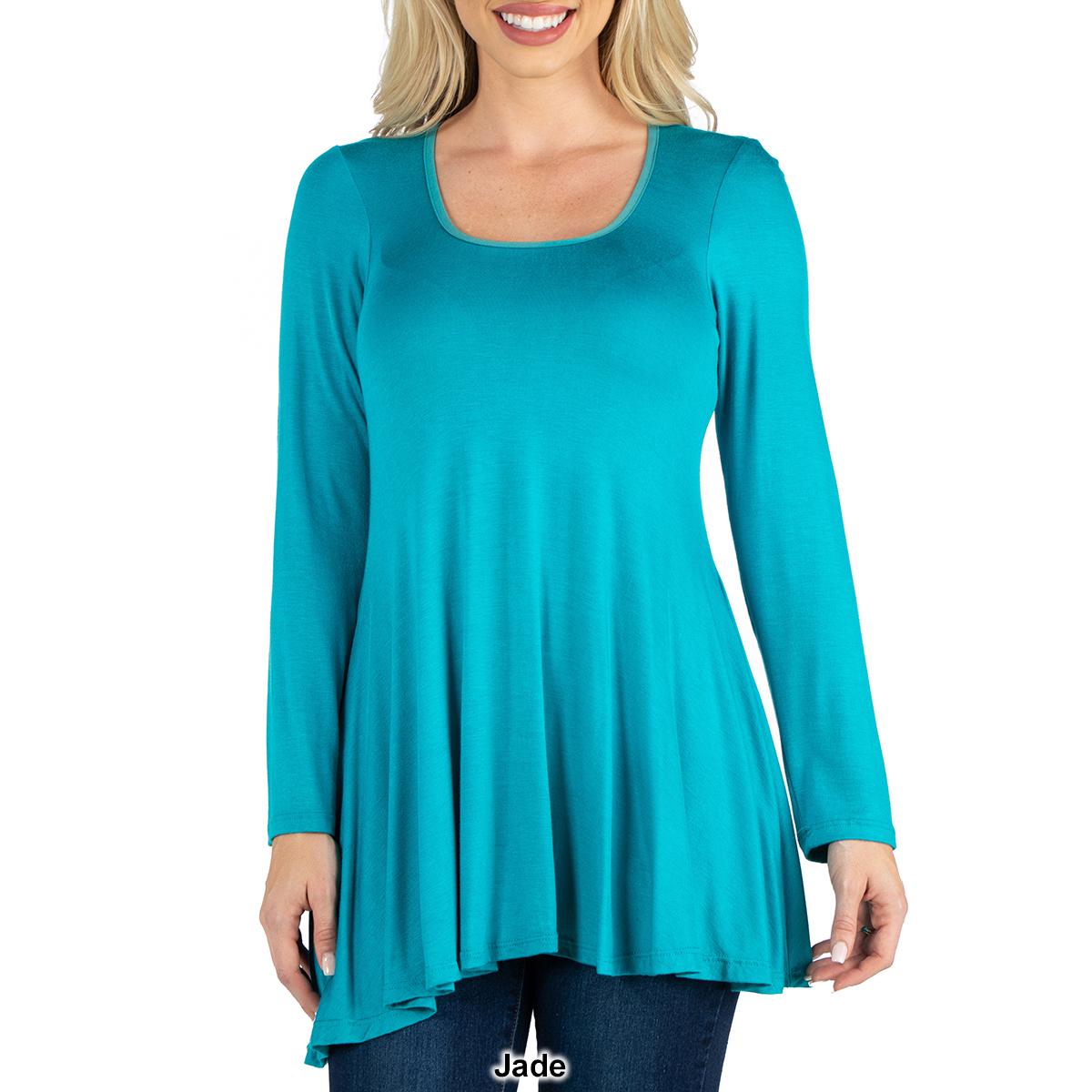 Description This Womens 24/7 Comfort Apparel tunic length long sleeve combines comfort and style for a chic feminine look. The flared cut accentuates natural curves while the...