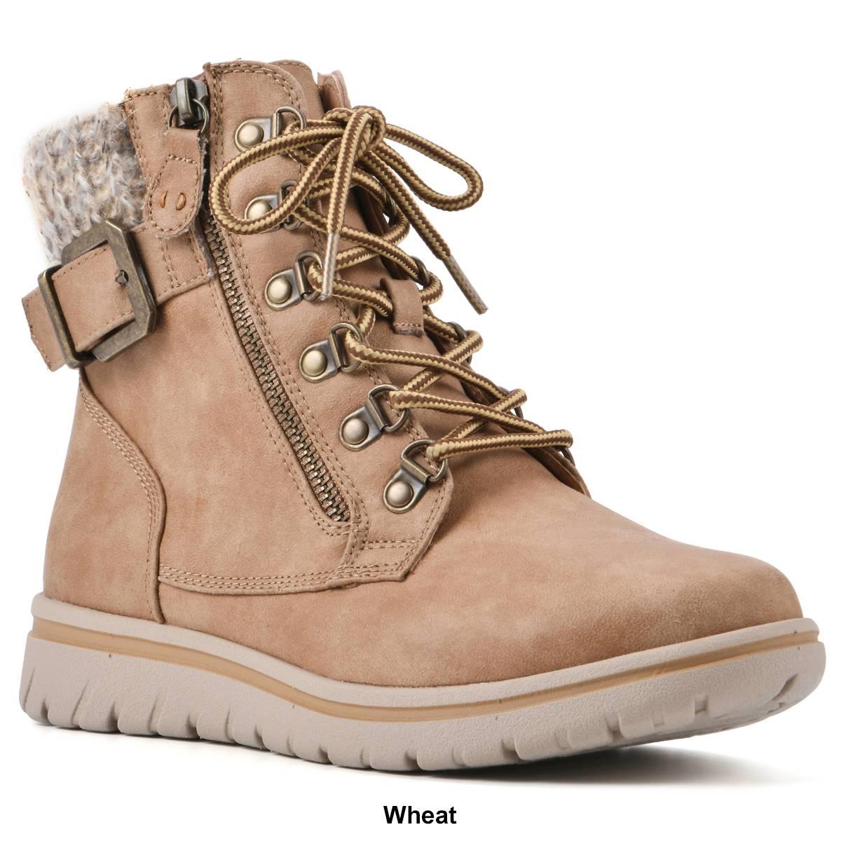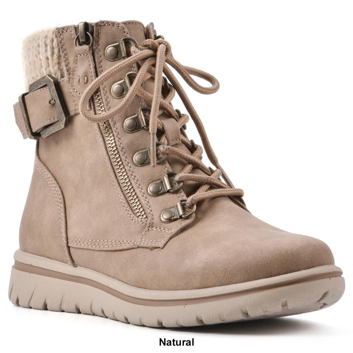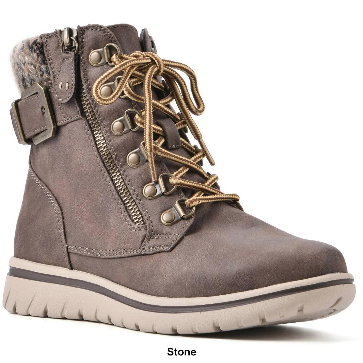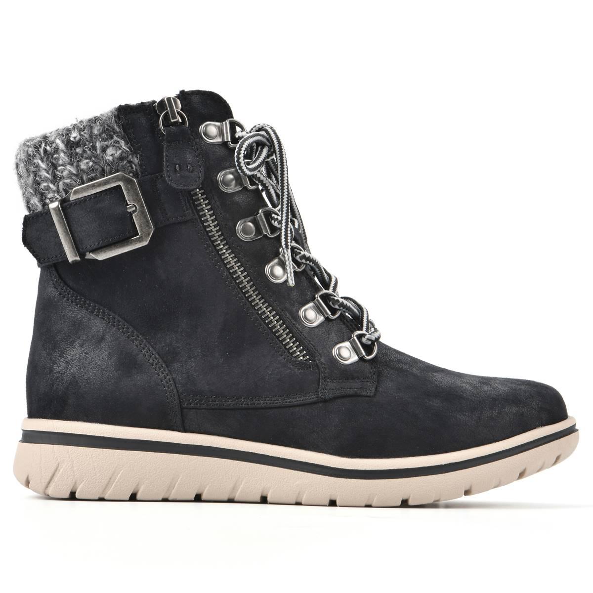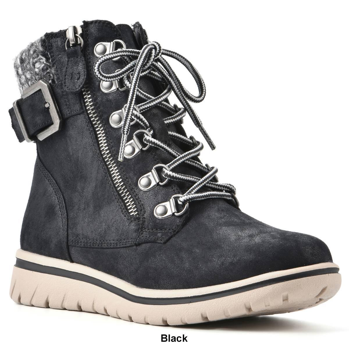 Description Set the stage with these Womens Cliffs by White Mountain Hearty lace-up ankle boots. Features a decorative zipper, buckle accents, and a knit collar that adds a...