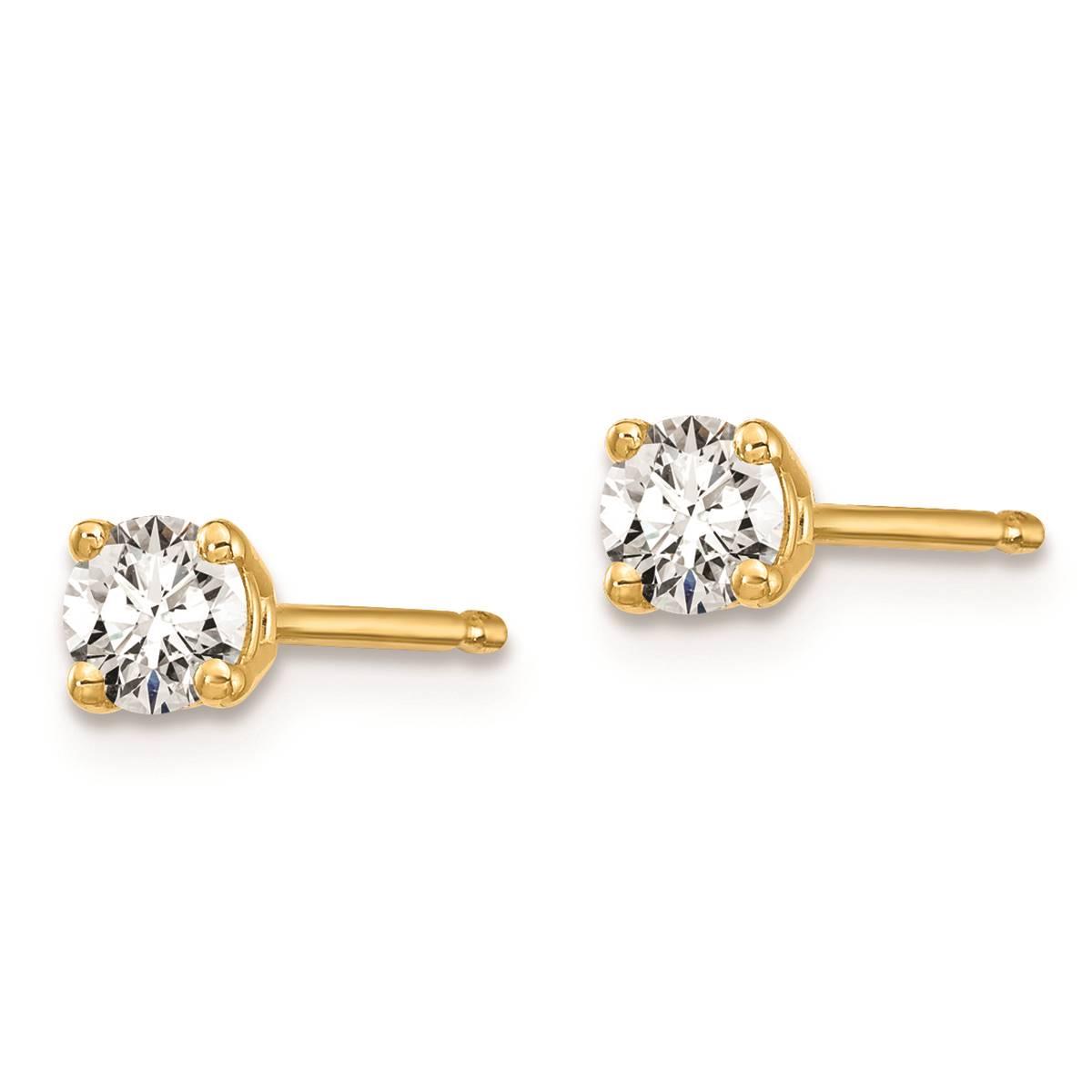 Bold and beautiful lab-grown diamonds give an unsurpassed grandeur to these Pure Fire 14kt. yellow gold 4-prong 1/4ctw. diamond stud earrings. Ideal for a special occasion or everyday use, each earring is graced with a single 3.2mm, VS/SI quality, D-E-F color lab-grown diamond well secured amidst 4-prongs. Polished for perfection, these earrings are secured with post and push-back closures.