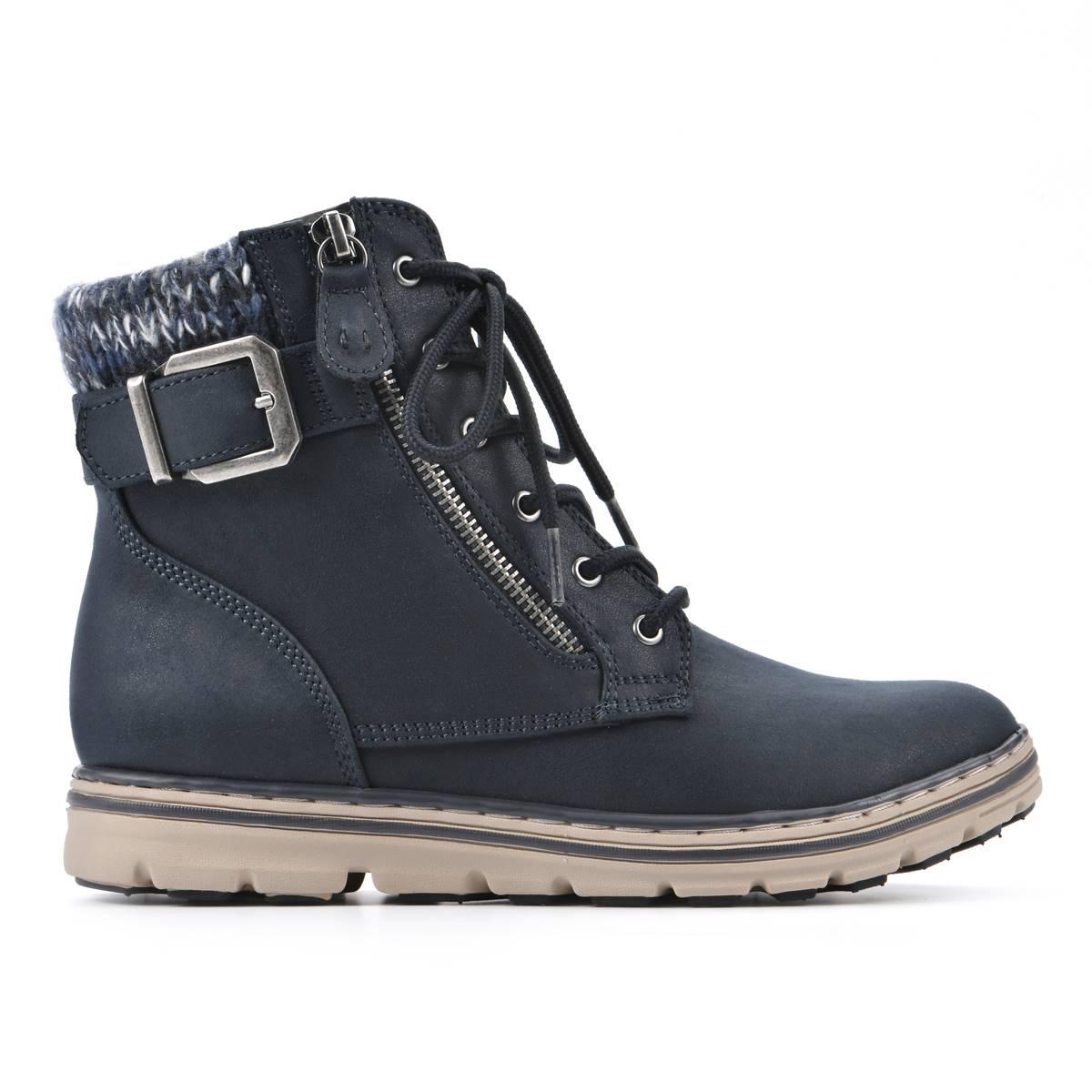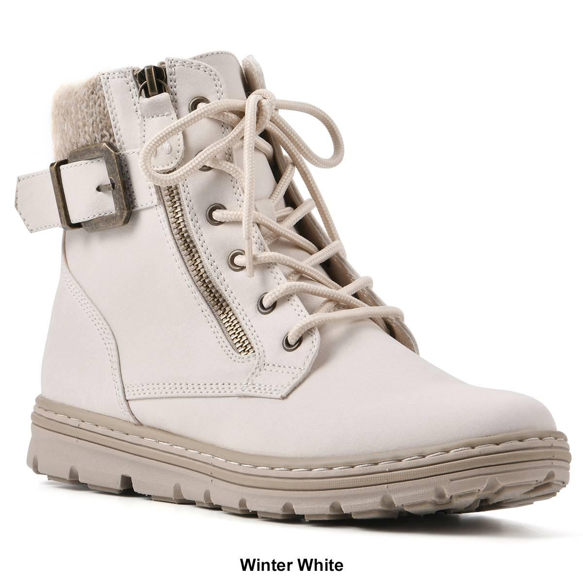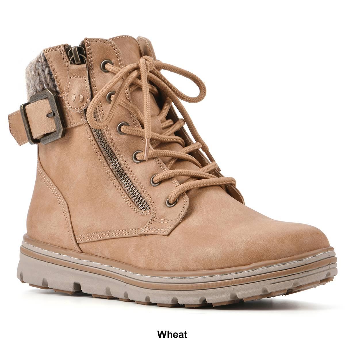 These Womens Cliffs by White Mountain Kelsie lace-up ankle boots will be your go-to this season. Takes the styling of a classic hiker to a fashion statement with its buckle and sweater detailing. The lightweight outsole and light cushioned insole make this style a great boot for all-day wear.