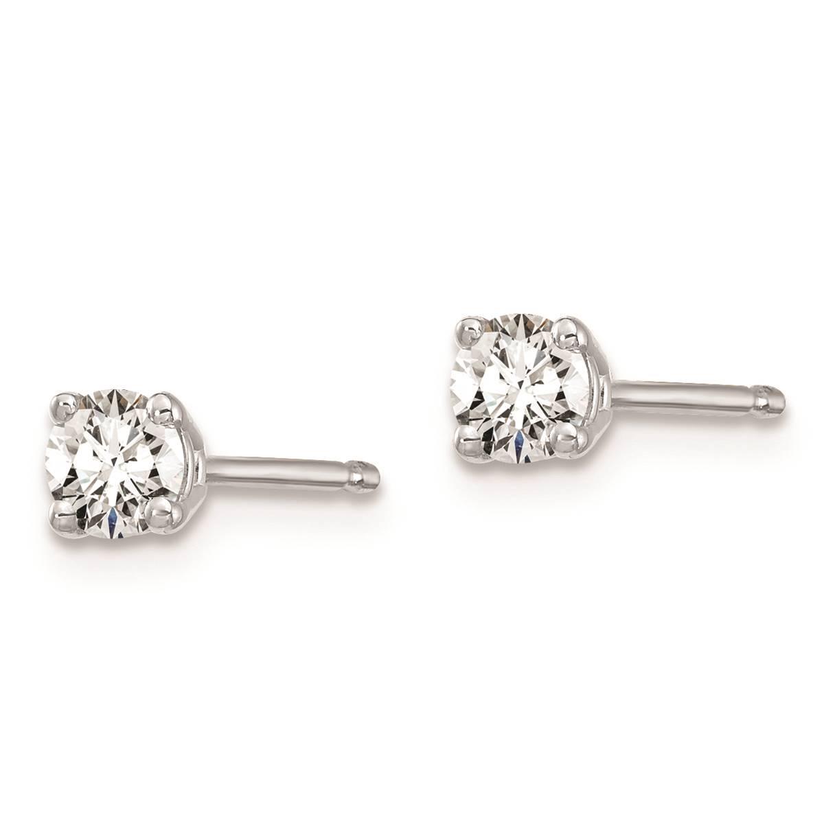 Bold and beautiful lab-grown diamonds give an unsurpassed grandeur to these Pure Fire 14kt. white gold 4-prong 1/4ctw. diamond stud earrings. Ideal for a special occasion or everyday use, each earring is graced with a single 3.2mm, SI1/SI2 quality, G-H-I color lab-grown diamond well secured amidst 4-prongs. Polished for perfection, these earrings are secured with post and push-back closures.