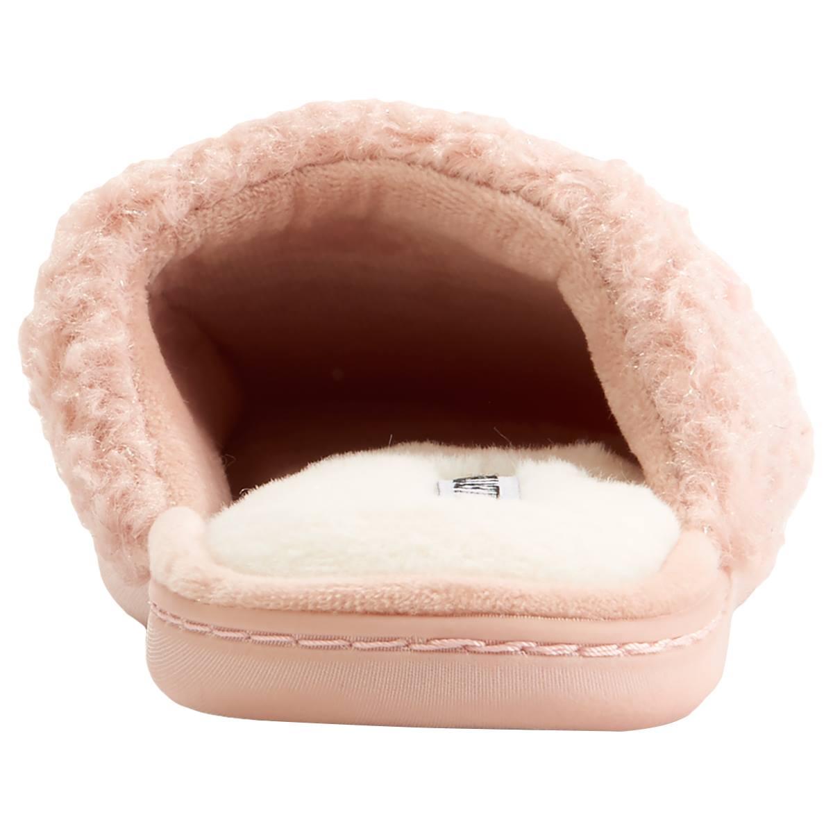 Description The Womens Ellen Tracy shimmer cable knit scuff slippers will pair great with your favorite pajamas. Featuring a pretty shimmer design with bow detail Memory Foam...