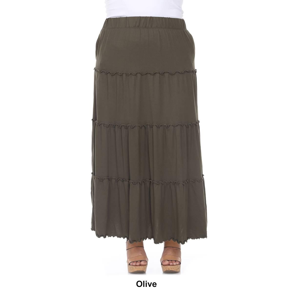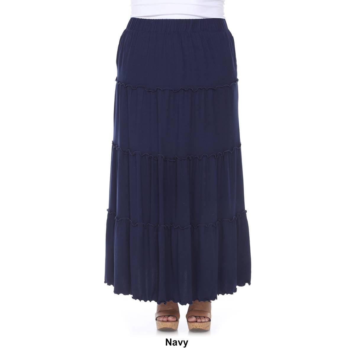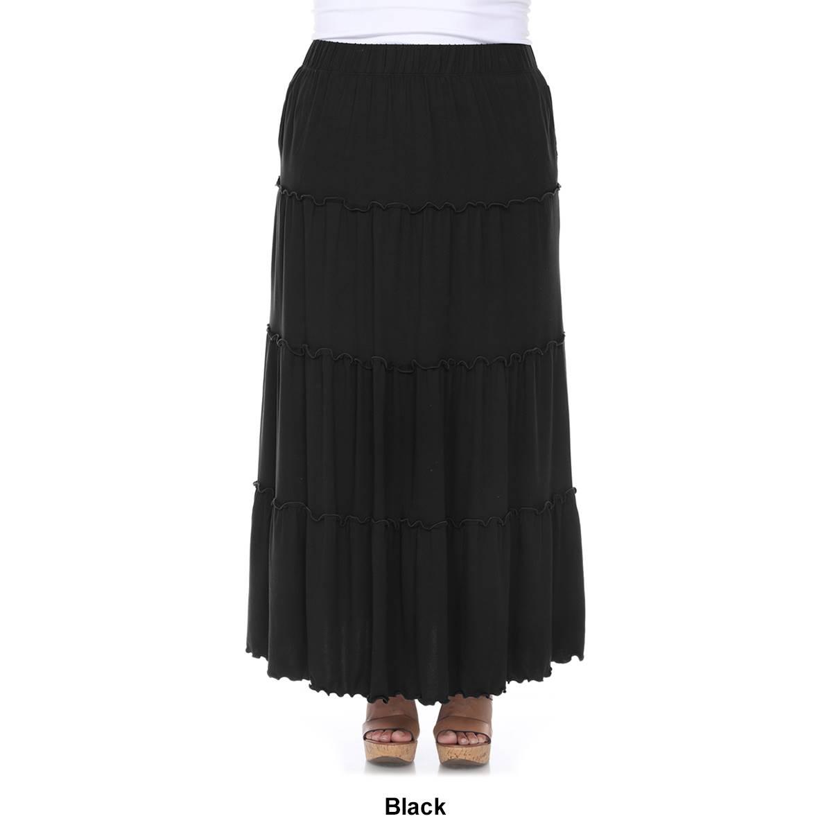 Description Achieve just the right amount of flounce appeal with this Plus Size White Mark tiered maxi skirt. Features an elastic waistband, midrise, pockets at the side, tiered...