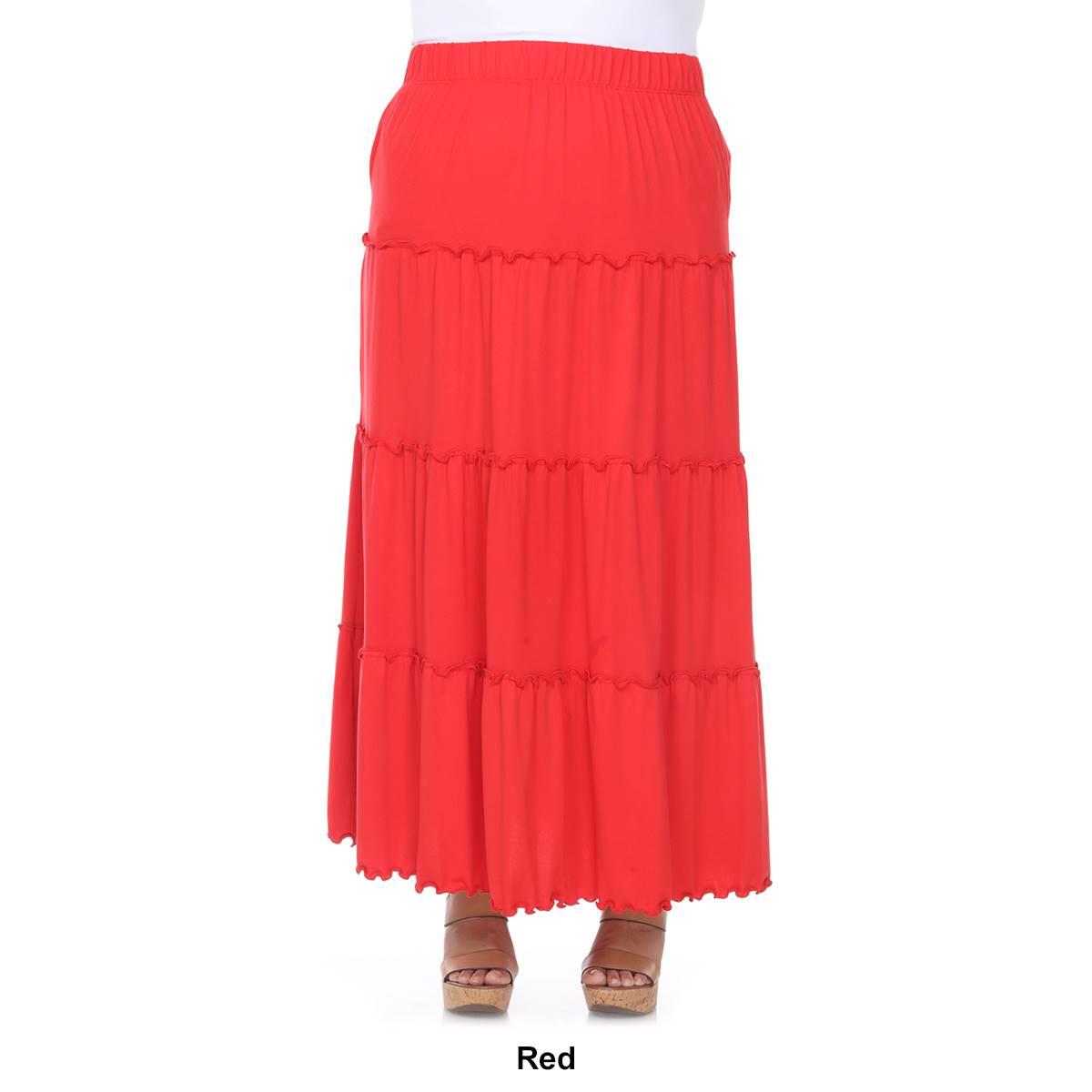 Achieve just the right amount of flounce appeal with this Plus Size White Mark tiered maxi skirt. Features an elastic waistband, midrise, pockets at the side, tiered trims with soft pleats, A-Line silhouette, and ruffled hemline. Pairs great with a tank or layered blouse for a classic beach look.