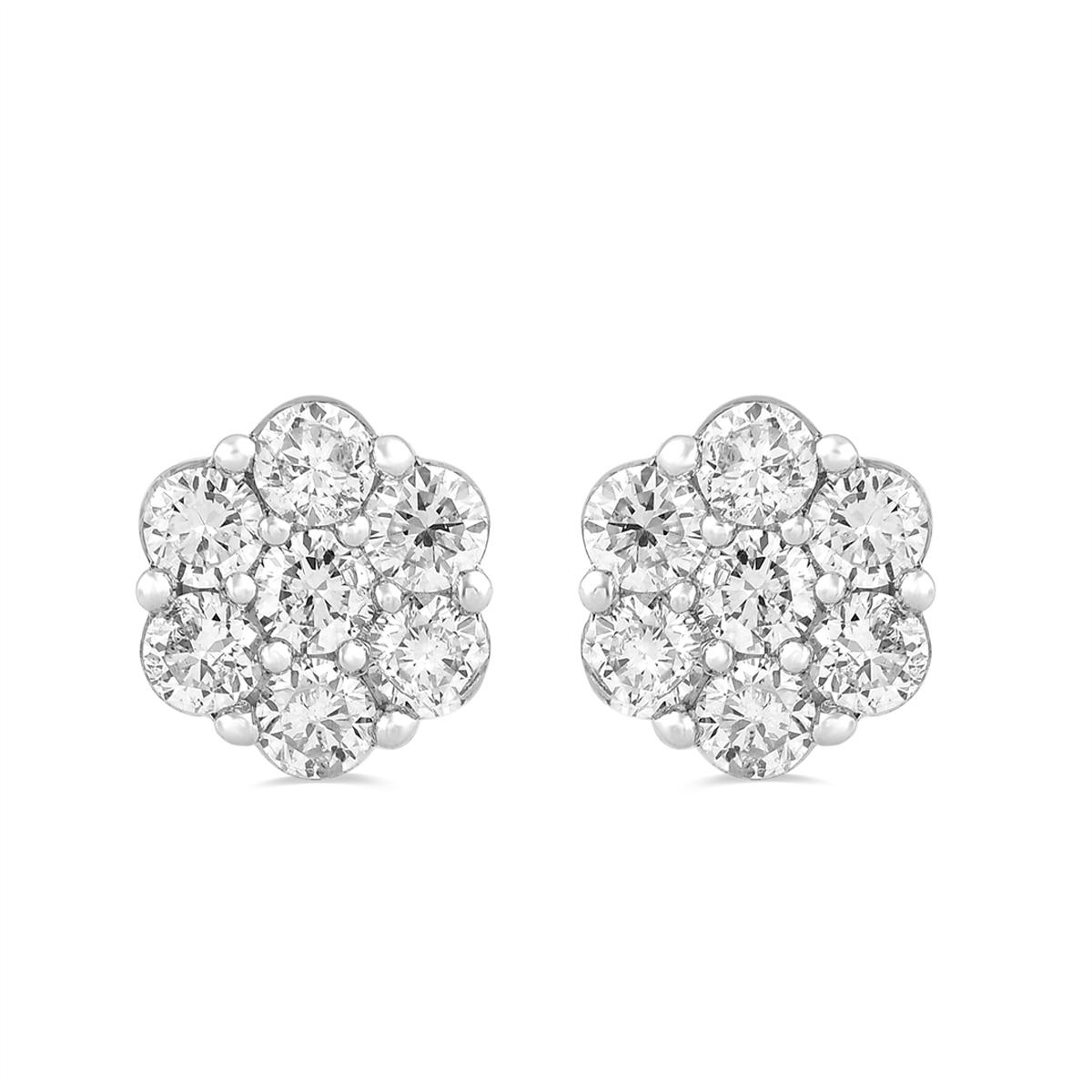 A new take on diamond studs, this Nova Star® masterpiece will set you apart from the crowd. A phenomenal dazzle, molded in sterling silver, 14 cut rounds, a total 1/2ctw lab grown diamonds gleam in the shape of a clustered flower, with its petals perfectly placed in geometric symmetry. Earrings secure with friction back.