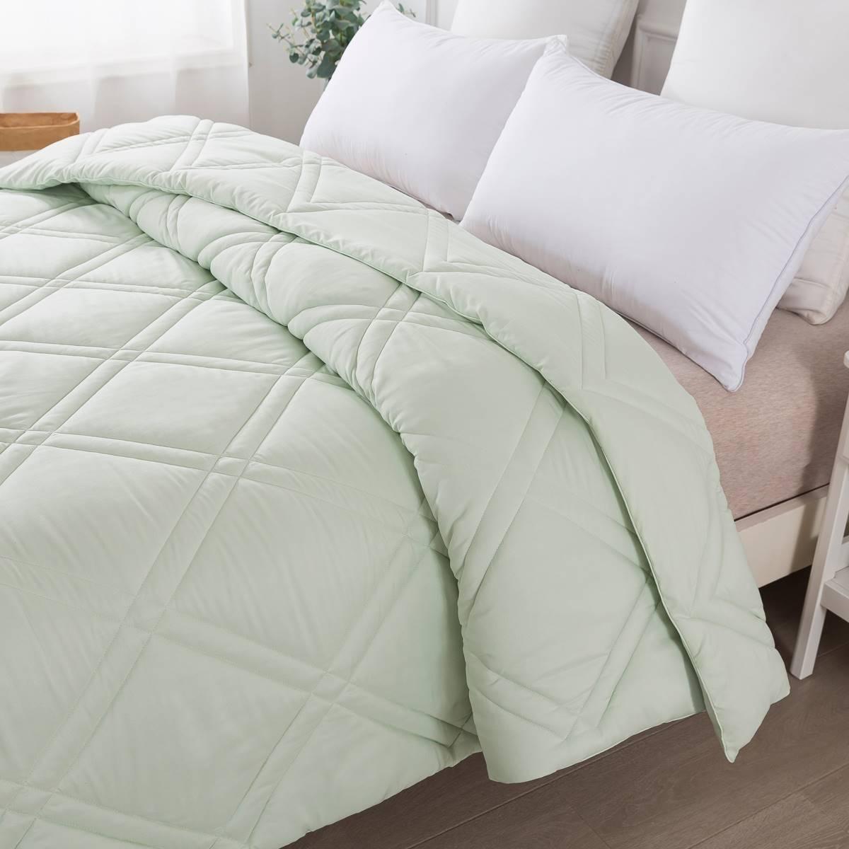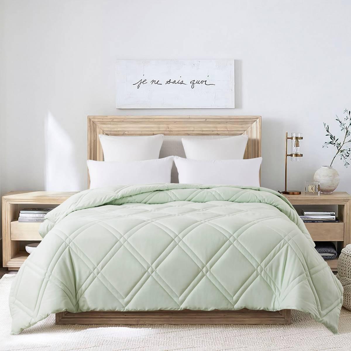 Sharp geometric shapes and lines create the striking design of the St. James Home Double Diamond Down Alternative Comforter. The 15-inch double diamond pattern provides a modern take on the standard comforter. In addition, the quilt stitching design helps to secure the fill in place for a long-lasting piece. The soft microfiber cover is the perfect choice for anyone looking for a comfortable, effortless comforter, available in multiple chic colors. Hypoallergenic polyester fill will provide you with year-round warmth and comfort. The comforter is machine washable for easy and convenient care.