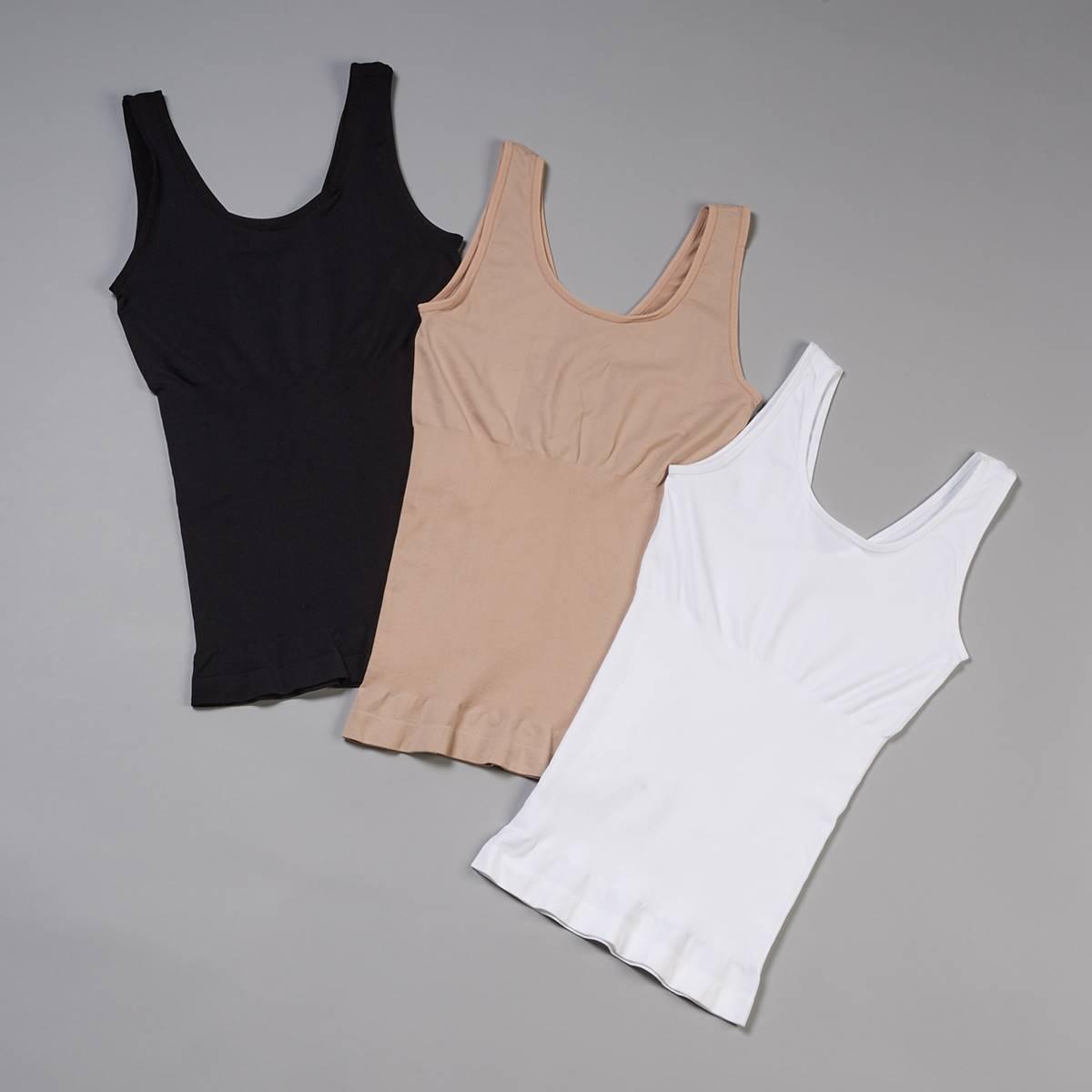 These Womens Skinnygirl 3-pack seamless reversible shaping camisoles are a great way to achieve a smooth, toned look. These tanks can be worn two different ways, giving you more options when it comes to your style. And the best part? These tanks tone your stomach and help to give you that sleek, slim look.