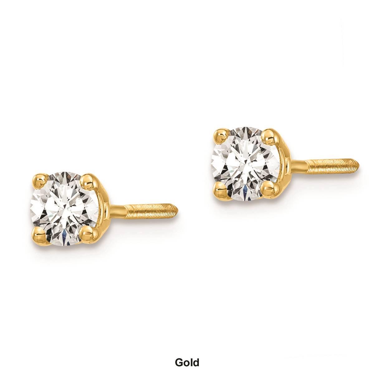 The timeless beauty of this gorgeous pair of Pure Fire lab-grown diamond stud earrings will always be in style. Made from 14kt. gold these earrings feature a 4-prong set sparkling SI1/SI2 clarity and G-H-I color grade lab-grown diamonds of 4mm each totaling 0.5ctw. Buffed for brilliant luster, these earrings are secured with post and screw-back closures.