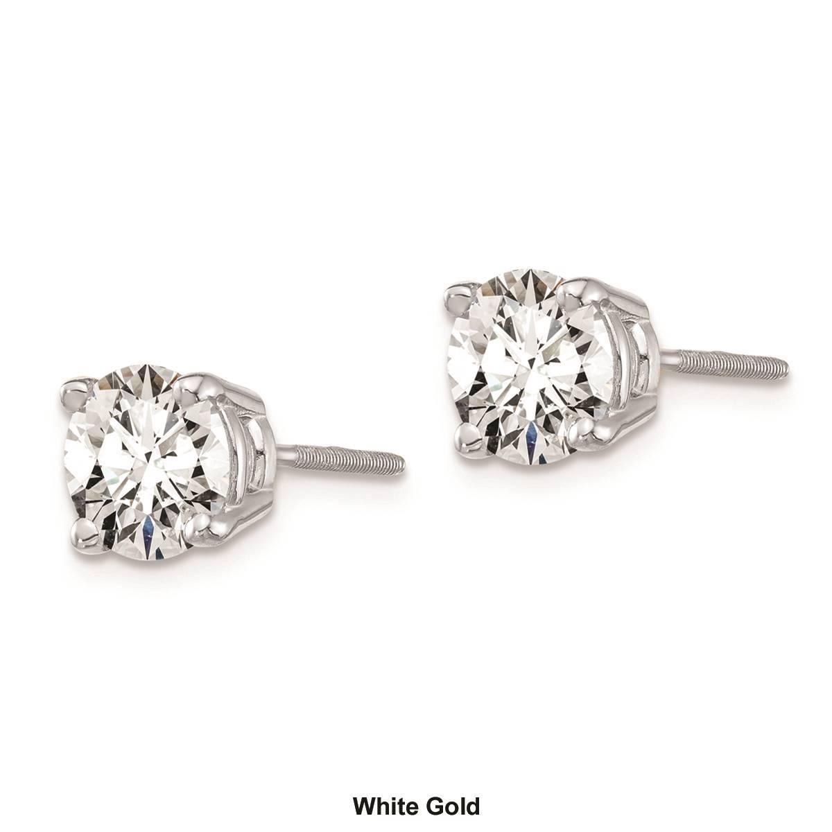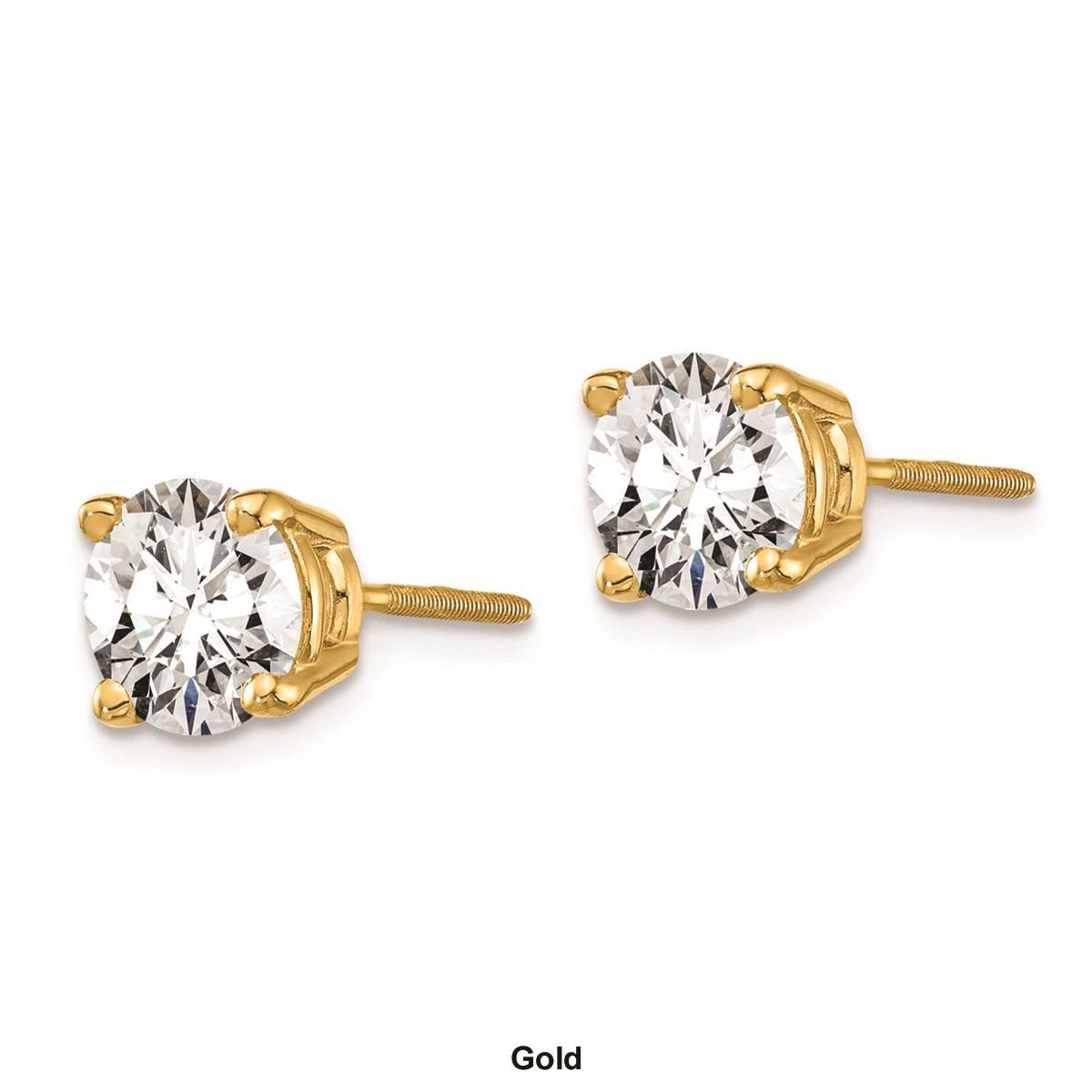 The timeless beauty of this gorgeous pair of Pure Fire lab-grown diamond stud earrings will always be in style. Made from 14kt. gold these earrings feature a 4-prong set sparkling VS/SI clarity and D-E-F color grade lab-grown diamonds of 5.8mm each totaling 1.5ctw. Buffed for brilliant luster, these earrings are secured with post and screw-back closures.
