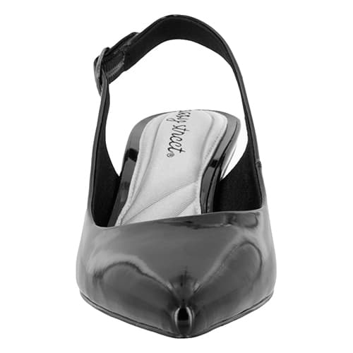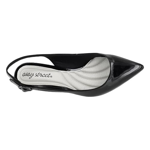 These Womens Easy Street Faye patent slingback pumps feature a kitten heel and an adjustable buckled strap that ensures a custom fit. The padded insole and easy flex outsole are a great combination for total comfort.