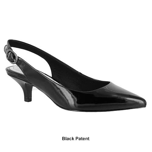 Description These Womens Easy Street Faye patent slingback pumps feature a kitten heel and an adjustable buckled strap that ensures a custom fit. The padded insole and easy flex...