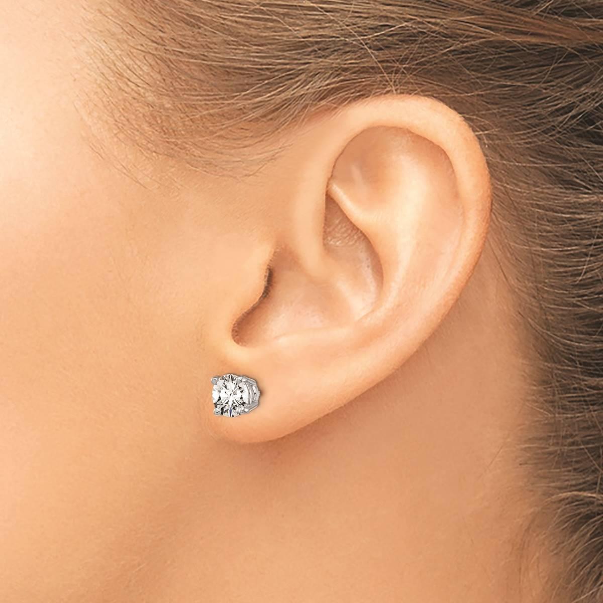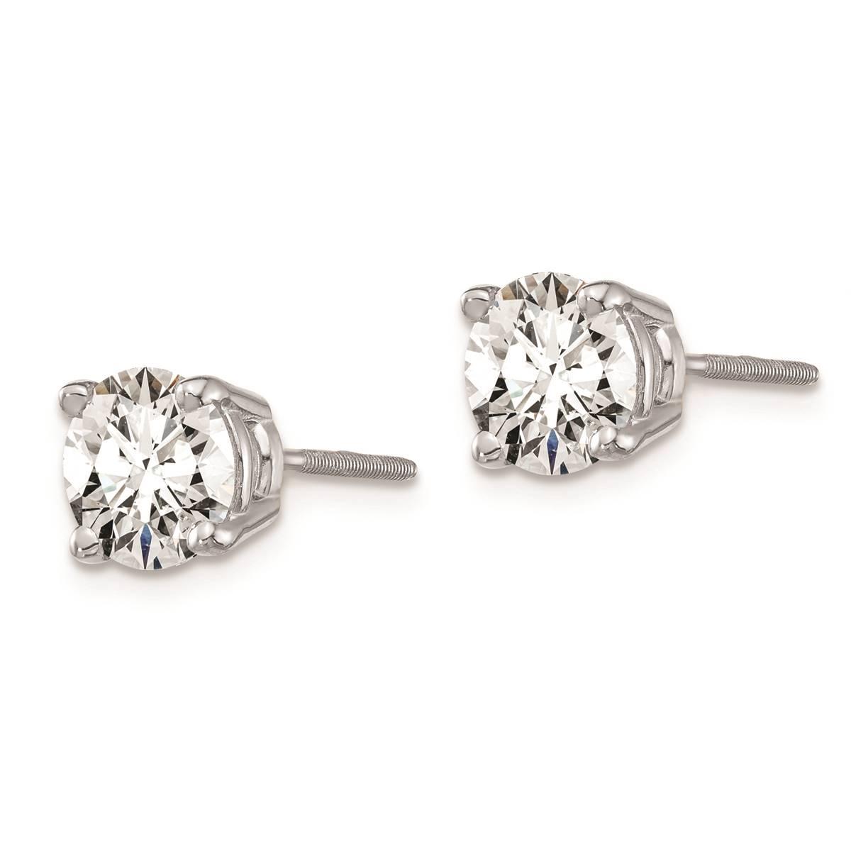 The timeless beauty of this gorgeous pair of Pure Fire lab-grown diamond stud earrings will always be in style. Made from 14kt. white gold these earrings feature a 4-prong set sparkling SI1/SI2 clarity and G-H-I color grade certified lab-grown diamonds of 6.5mm each totaling 2ctw. Buffed for brilliant luster, these earrings are secured with post and screw-back closures.