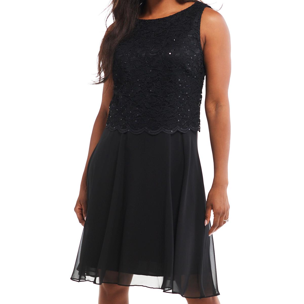 Description Step out this season wearing this Petite Connected Apparel popover dress. Sleeve Length: SleevelessNeck: Boat NeckLength: 38"Sequin lace Lace Care: Dry Flat, Hand...