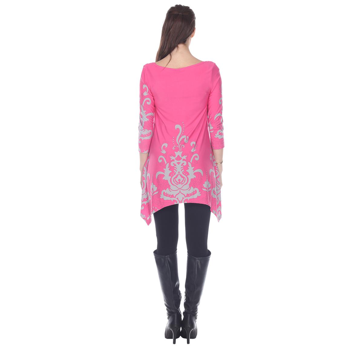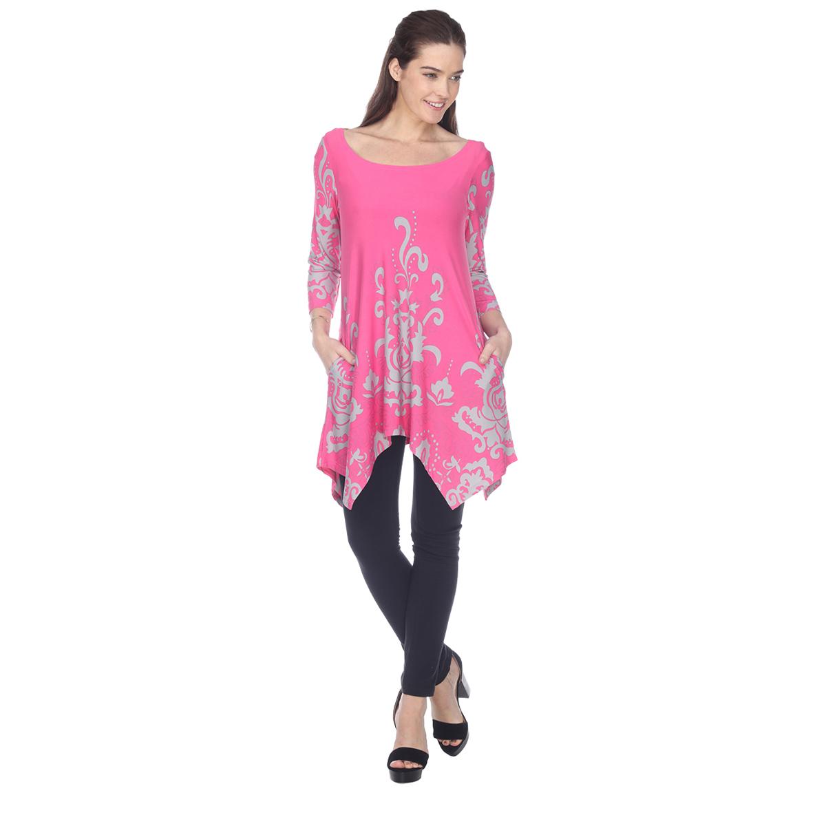 Description This White Mark Yanette pink and grey printed tunic top will make a chic addition to your clothing collection. Its flattering design drapes effortlessly across your...