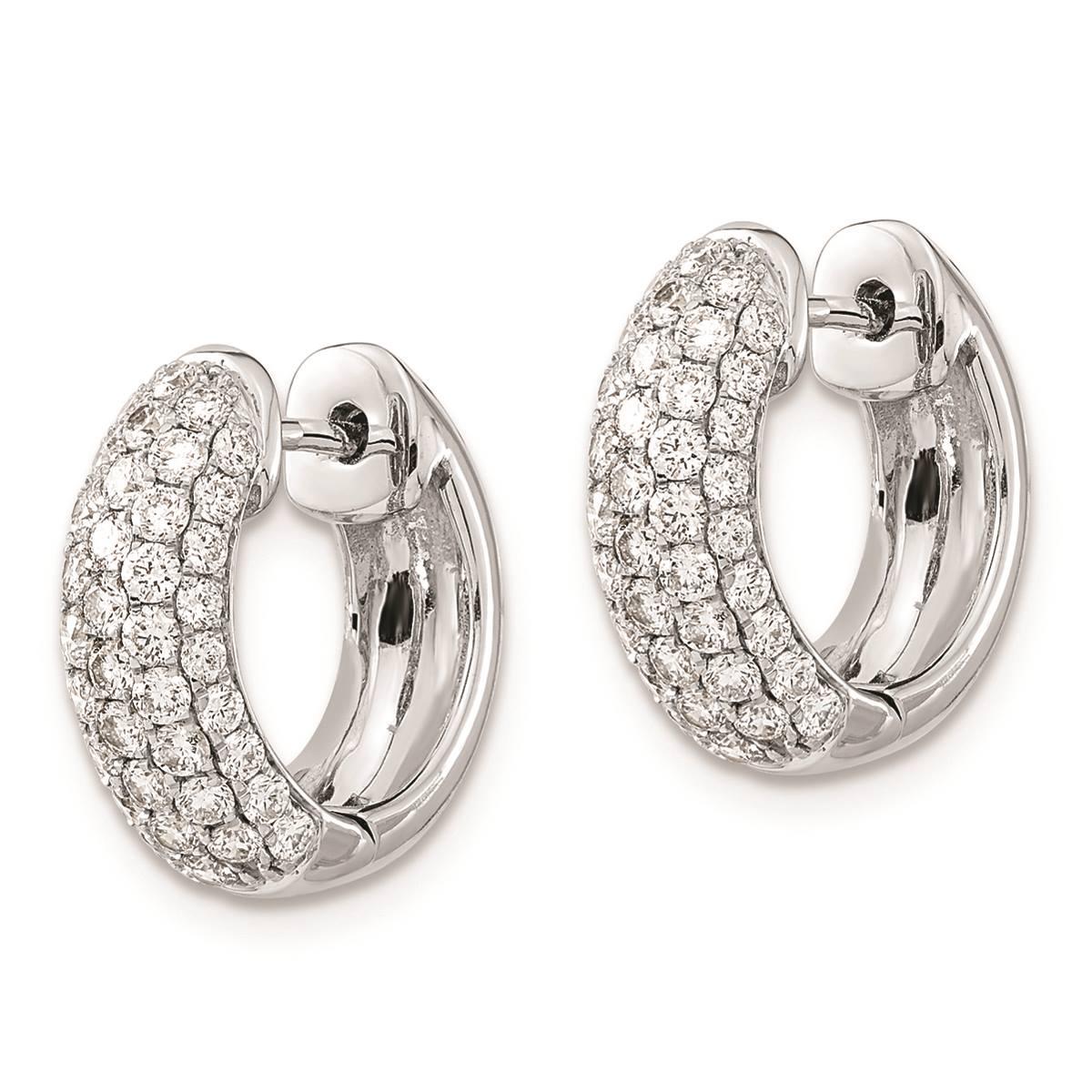Wear these beautiful lab-grown diamond hoop earrings and add a graceful shimmer to your ensemble. Crafted in 14kt. white gold with a gleaming polished finish, the earrings feature 1.21ctw. lab-grown diamonds for an enduring look. These 19mm earrings are secured by post, notch, and lock closures.