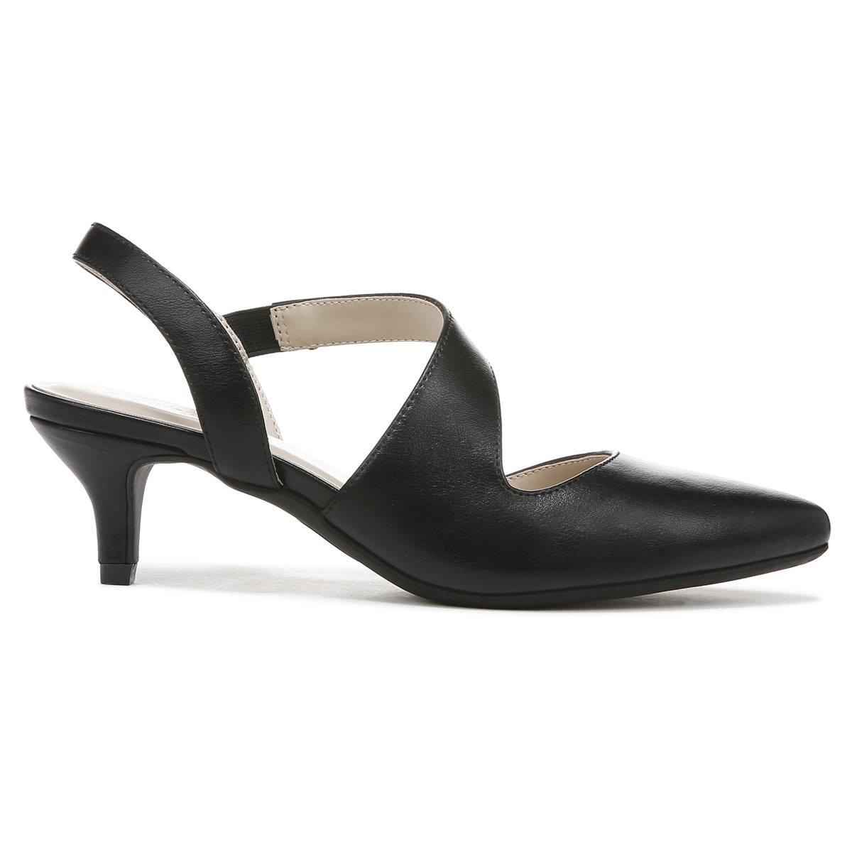 Lifted on an all-day kitten heel, these Womens LifeStride Magnetic slingback faux leather dress pumps are up for anything on your agenda. Features a pointed toe, slip-on fit for easy on/off, heel sling strap, hidden stretch gore for extra flexibility, and asymmetrical strap detail.