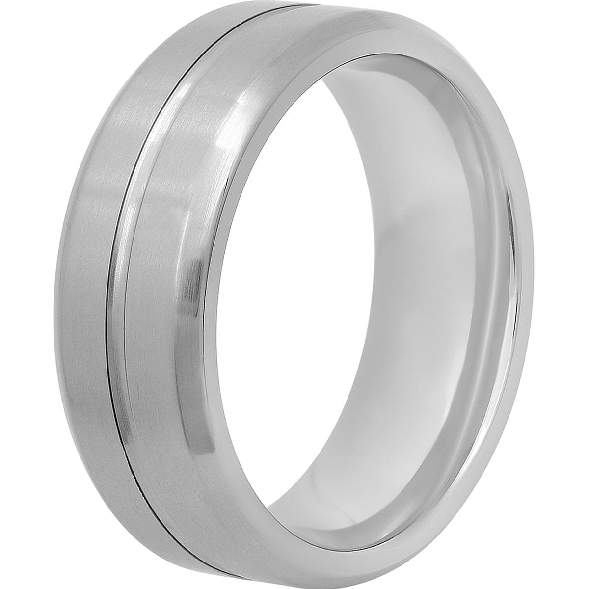 This 8mm Mens Endless Affection™ titanium wedding band is a symbol of everlasting love. Its masculine design is engravable and displays grooved and beveled detail with a polished finish for an everlasting shine.