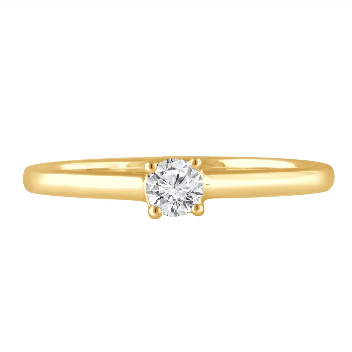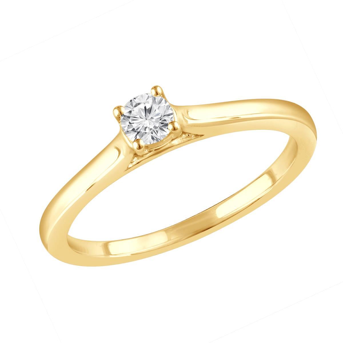 Ensure a positive response with this breathtaking lab-grown diamond engagement ring. Crafted in polished 10kt. yellow gold, this singular design showcases a sparkling 1/4ctw. lab-grown diamond solitaire - boasting a color rank of I-J and clarity of VS-SI - in a four-prong setting atop a graceful shank. Buffed to a brilliant luster, this engagement ring will delight the woman you love.