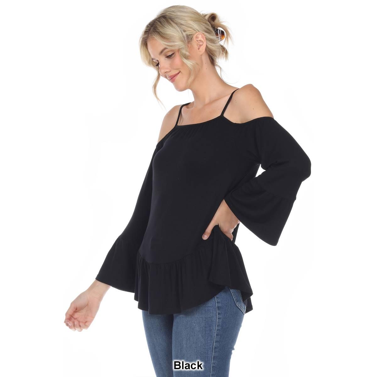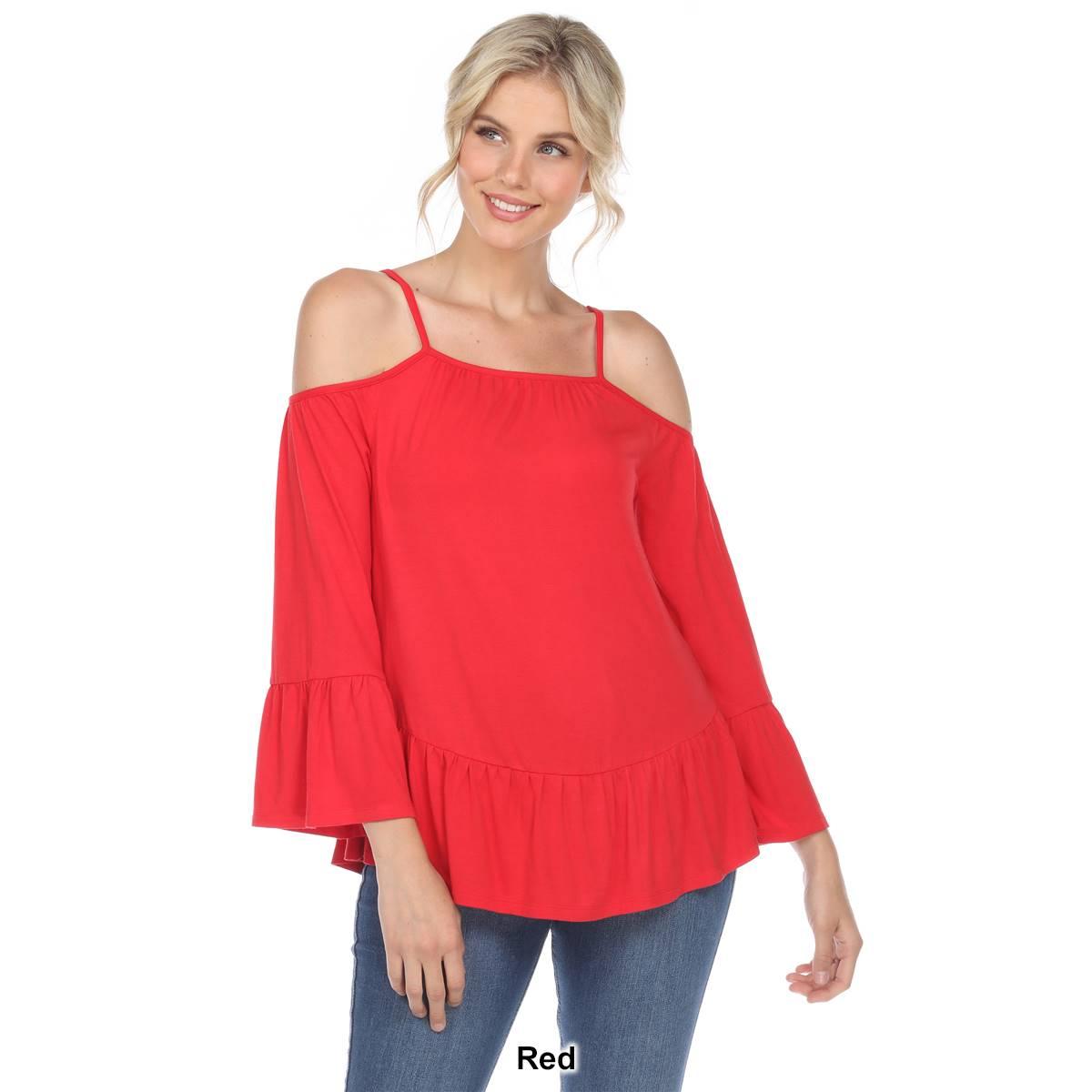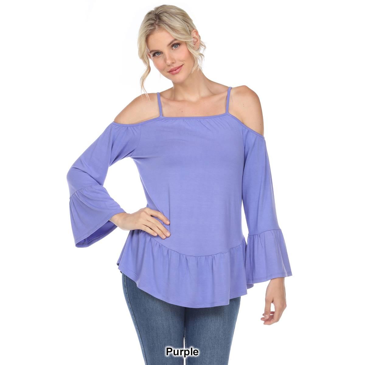 Get all the looks this summer and beyond with this Womens White Mark cold shoulder ruffle sleeve blouse. The very subtle shoulder cut brings you a very classy alluring look and the bell sleeves are pure sophistication. Pairs perfectly with leggings, jeans, or shorts.