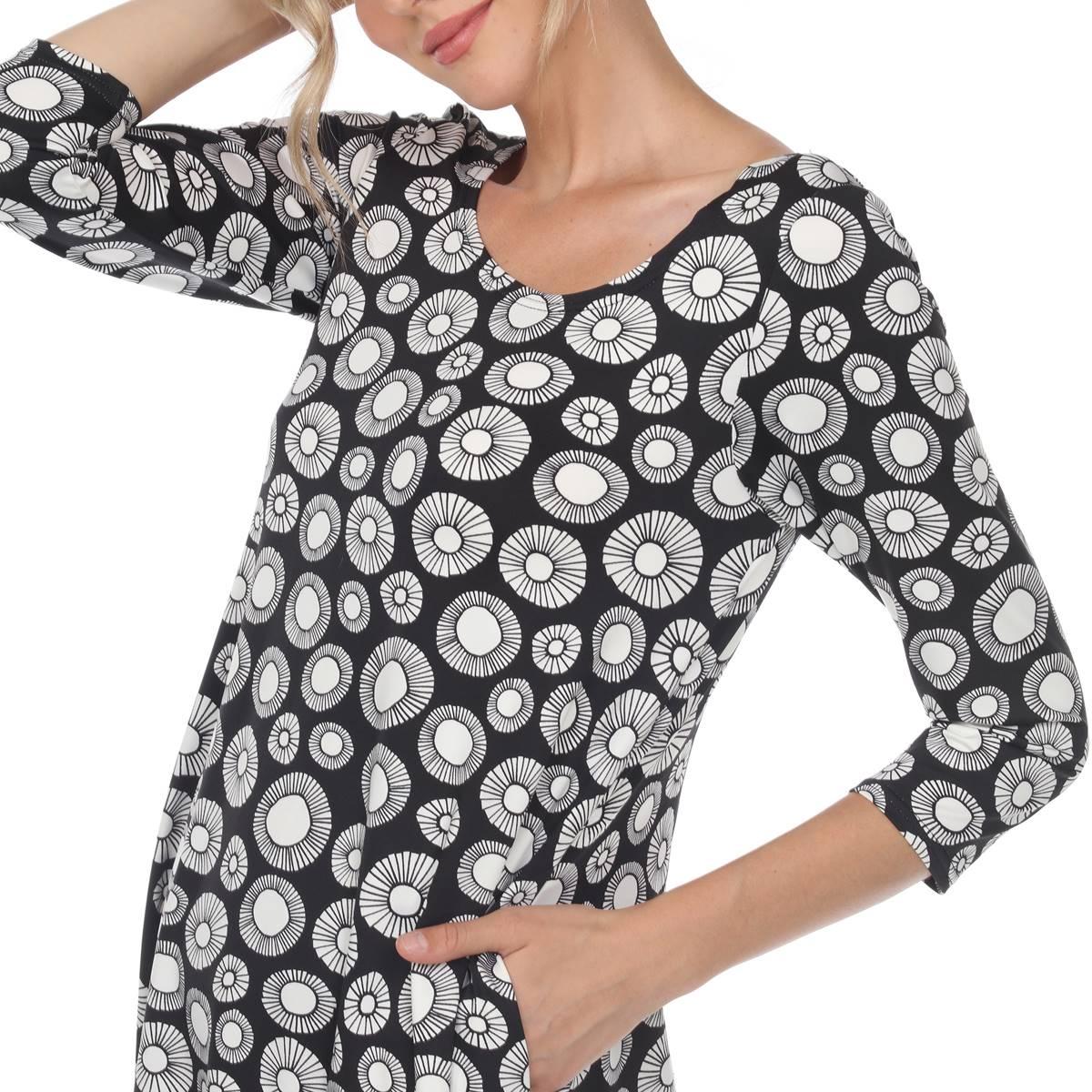 Stand out with this Womens White Mark geometric circle tunic top. Features 3/4 sleeves, scoop neck, and shark bite hem. This tunic is so versatile you can pair it with leggings, shorts, or pants.