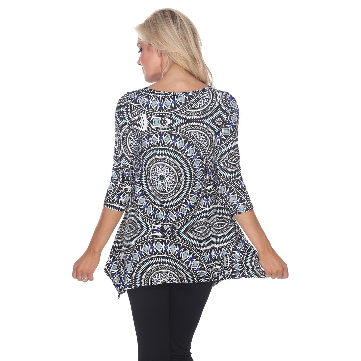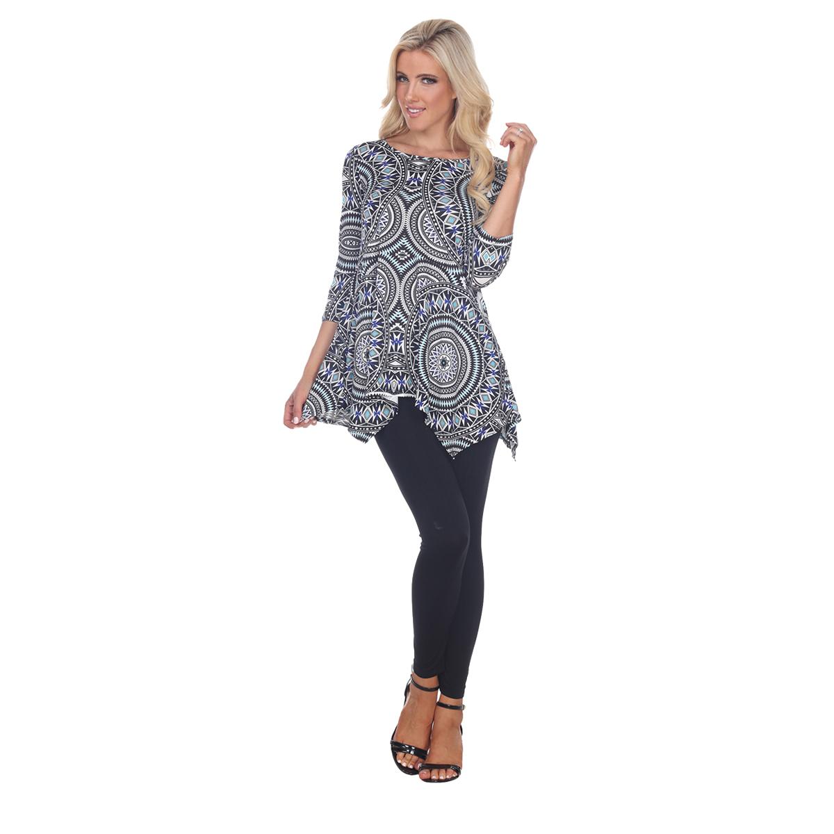 This Womens White Mark Maji bold geometric printed tunic will make a chic addition to your clothing collection. Its flattering design drapes effortlessly across your body with a bold and flirty print. Other features include a boat neck and 3/4 length sleeves that will make you look stylish and feel comfortable.
