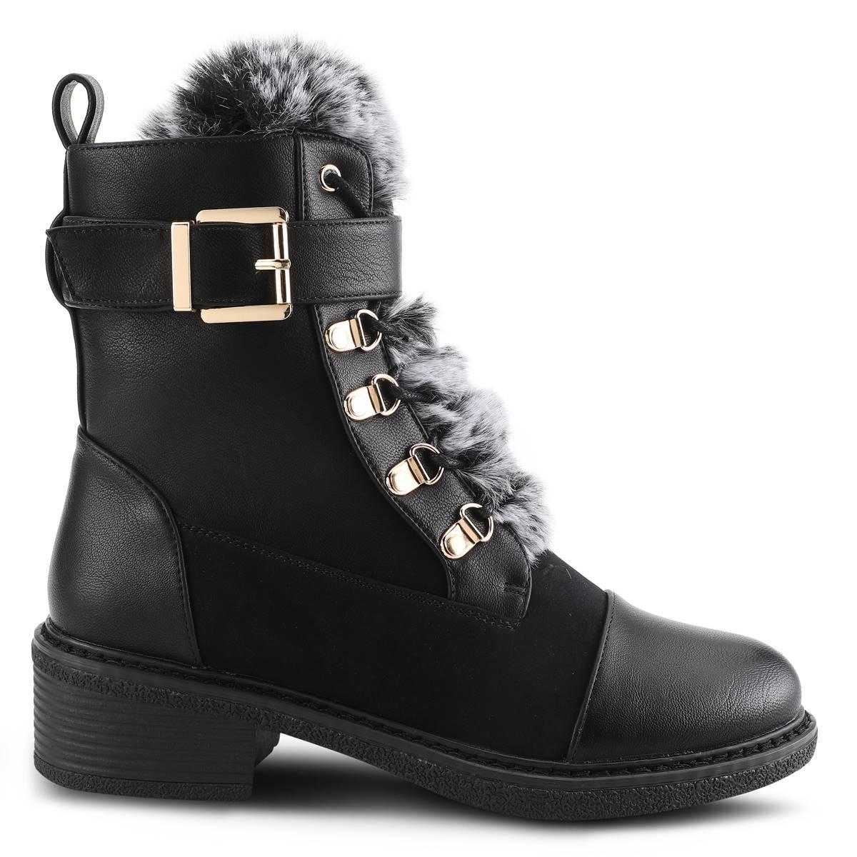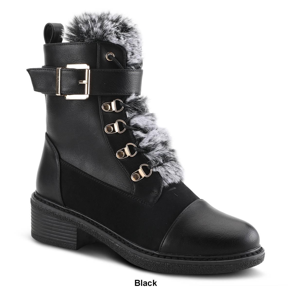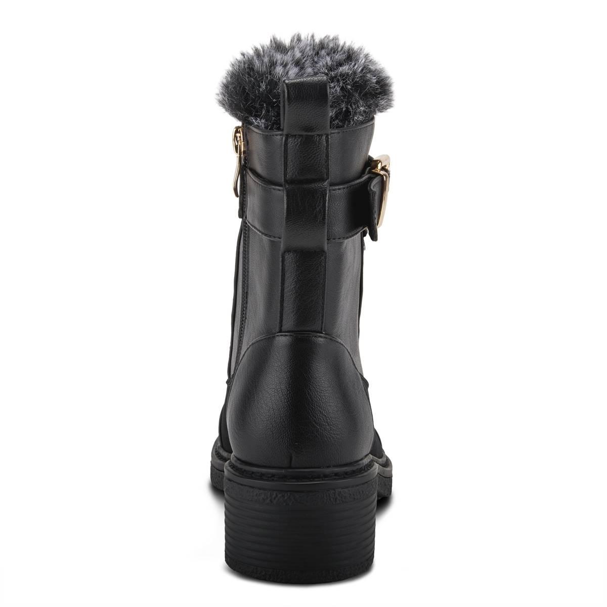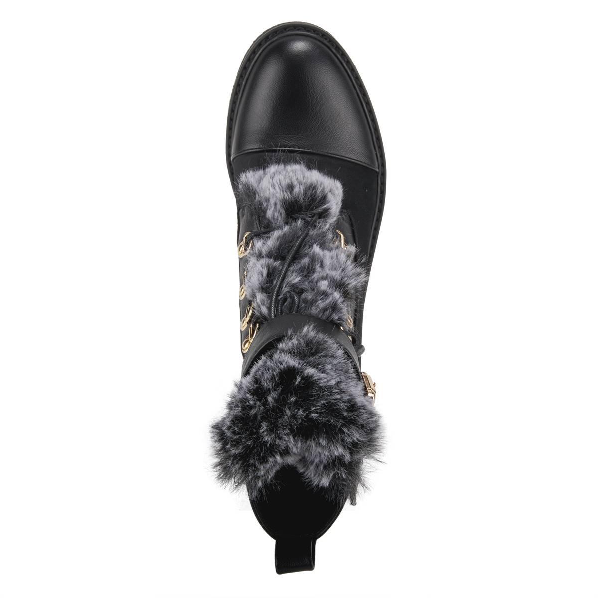 These Womens Patrizia Hilvia combat boots combine style with comfort, perfect for the cold weather. Featuring a decorative buckle strap, a pull-up tab, gold-tone metal hardware, and a faux fur-covered tongue.