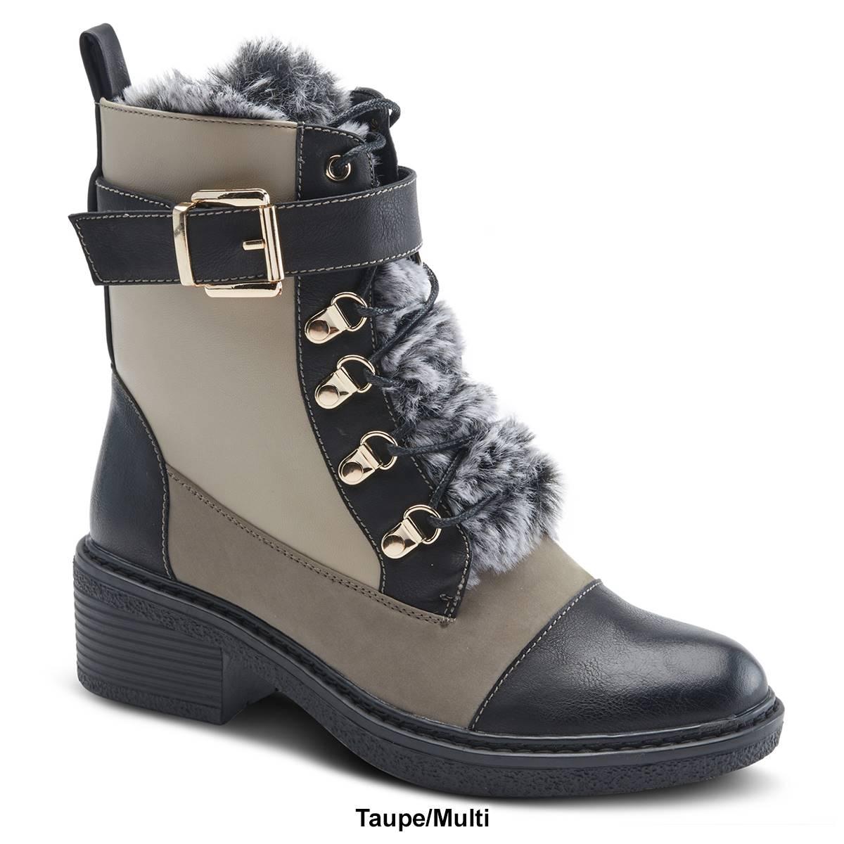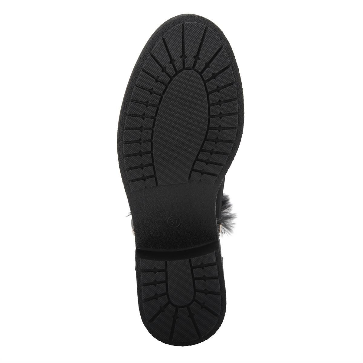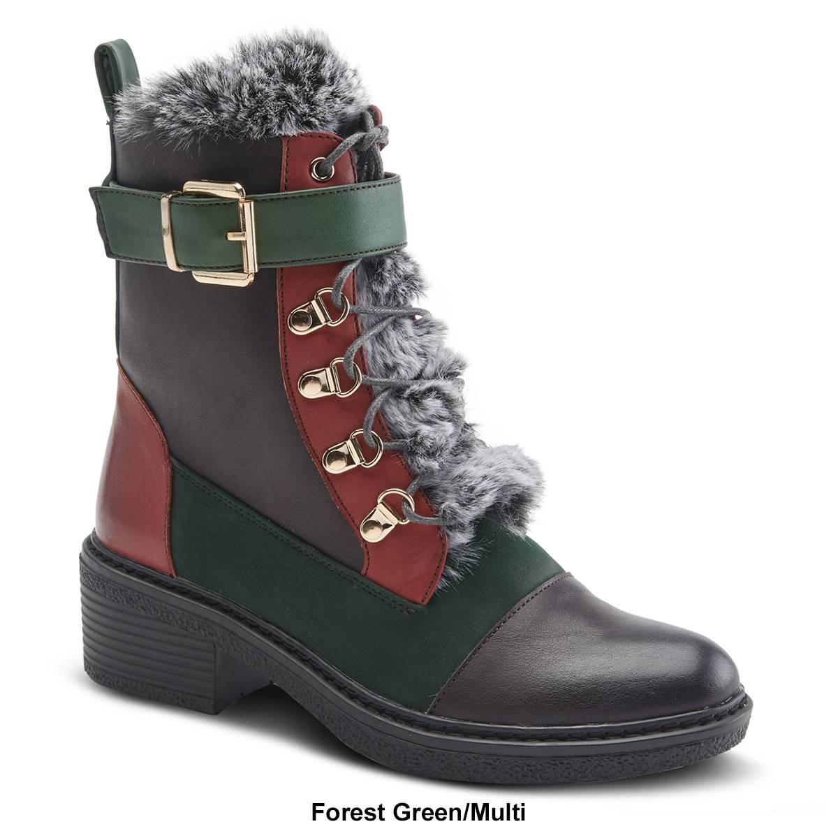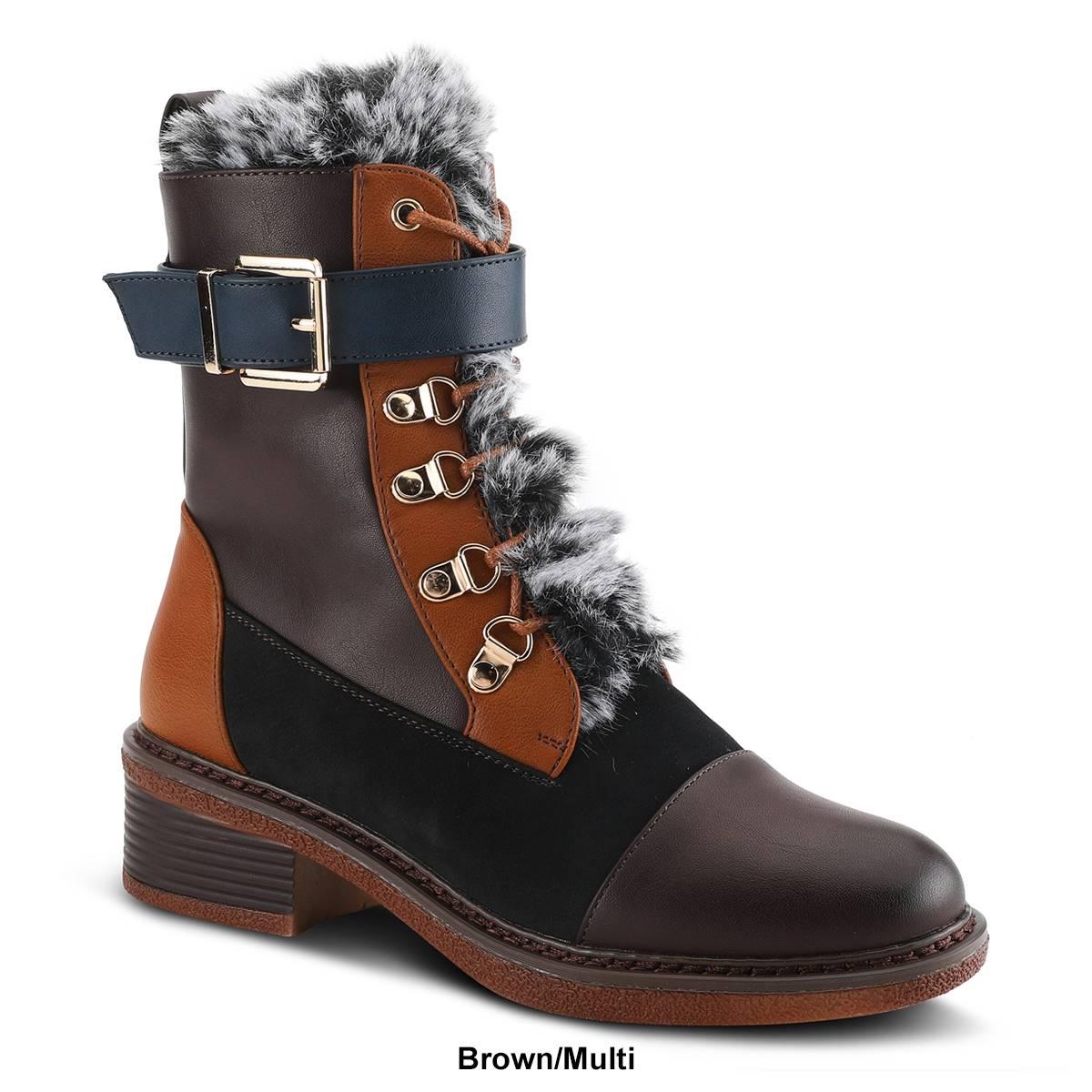 These Womens Patrizia Hilvia combat boots combine style with comfort, perfect for the cold weather. Featuring a decorative buckle strap, a pull-up tab, gold-tone metal hardware, and a faux fur-covered tongue.