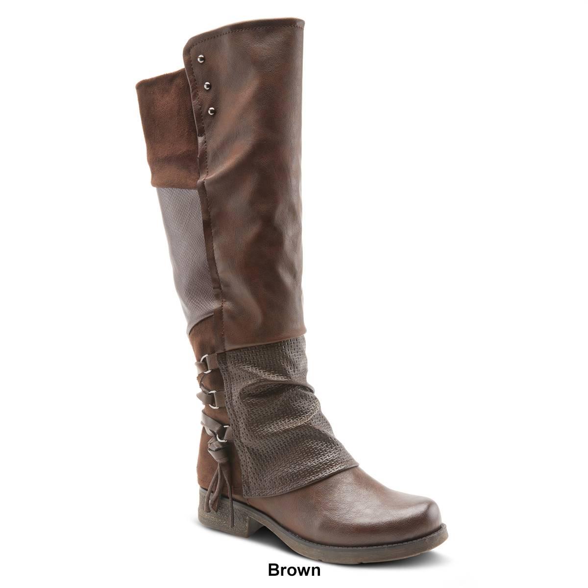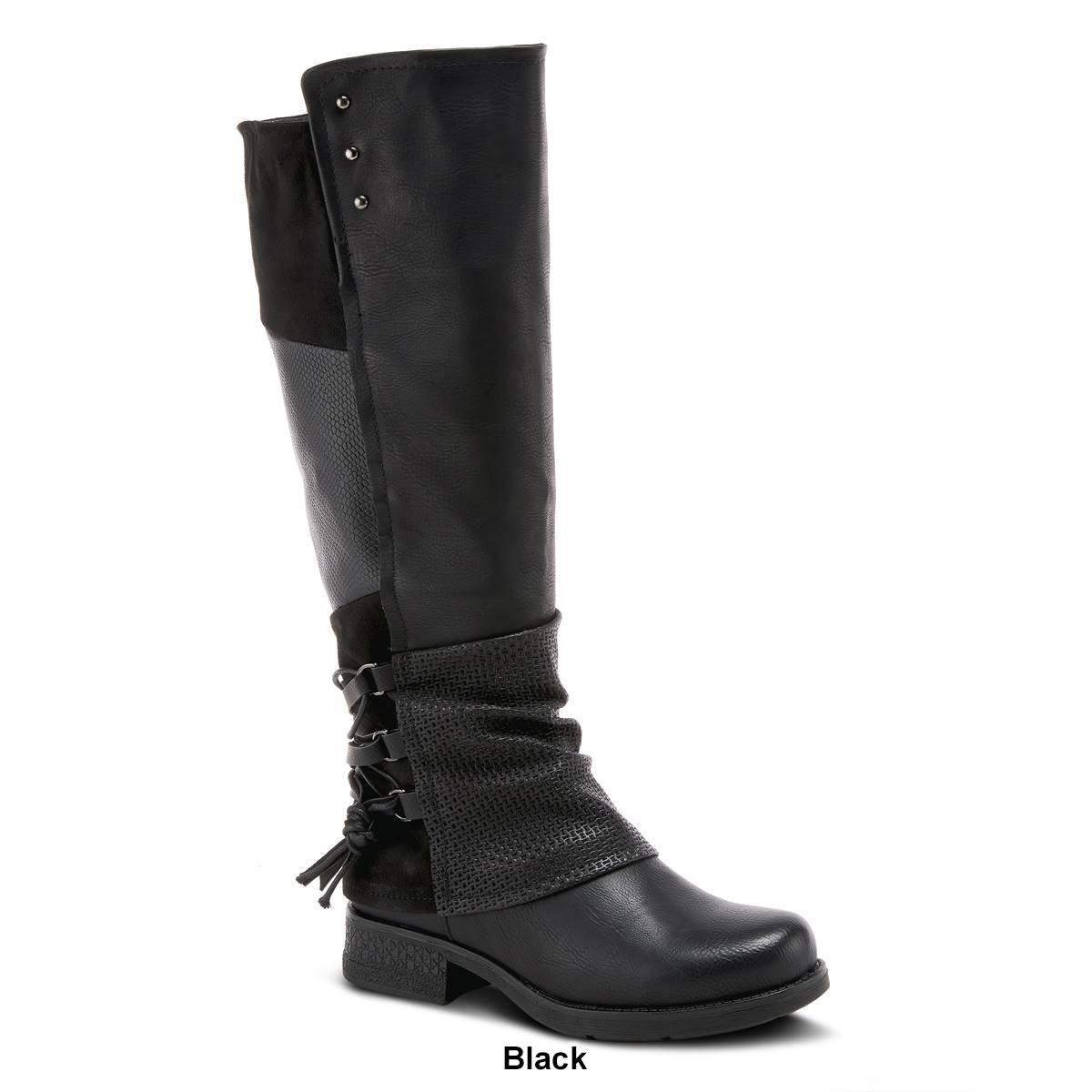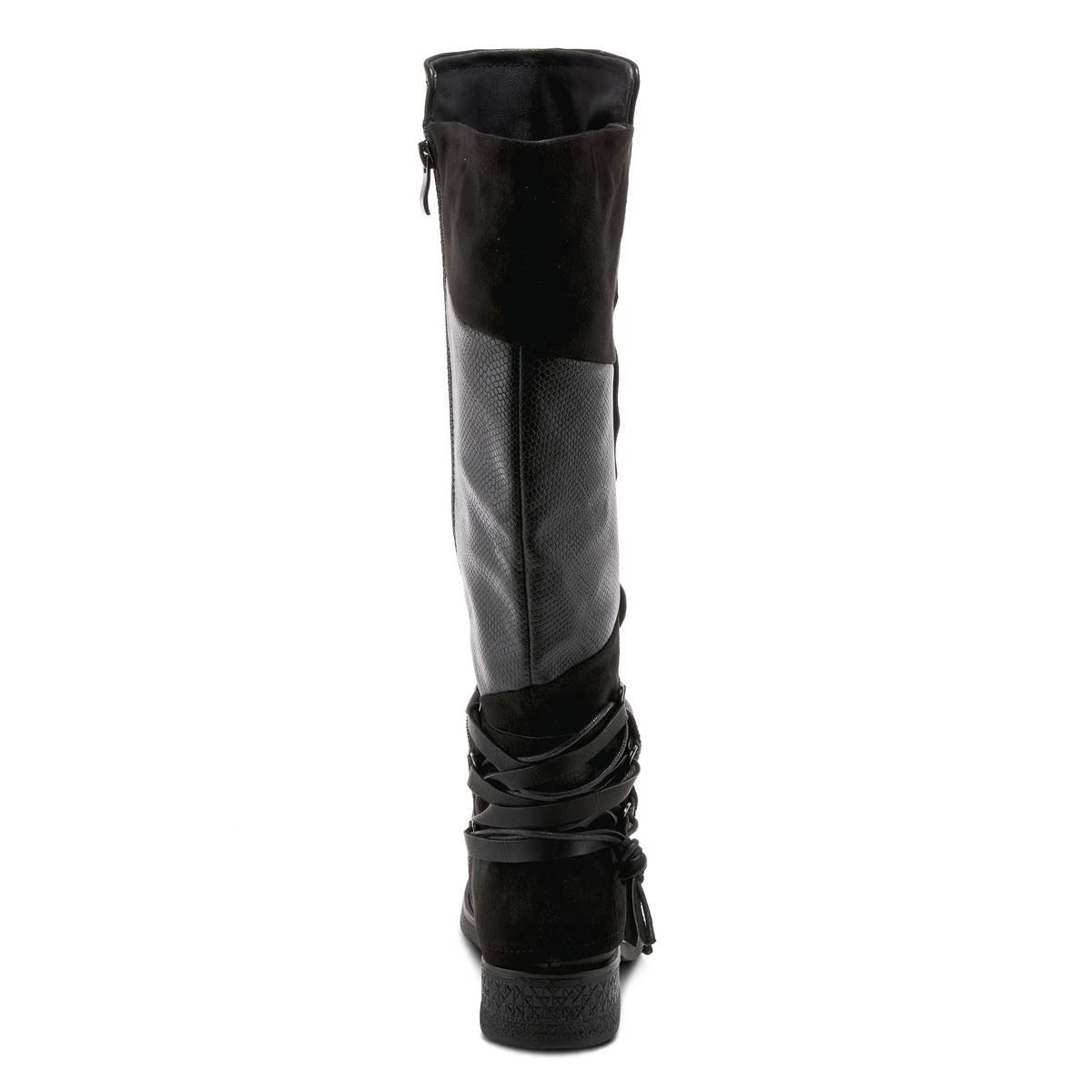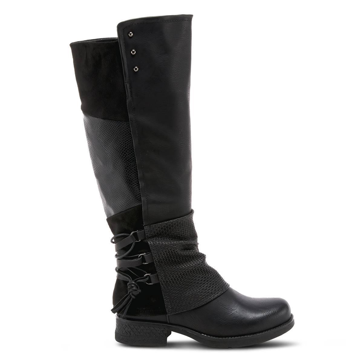 These modern Womens Patrizia Maxie tall boots will perfectly fit your wardrobe. Featuring an embossed patchwork design with a decorative back shaft lacing and an easy on/off inside zipper.
