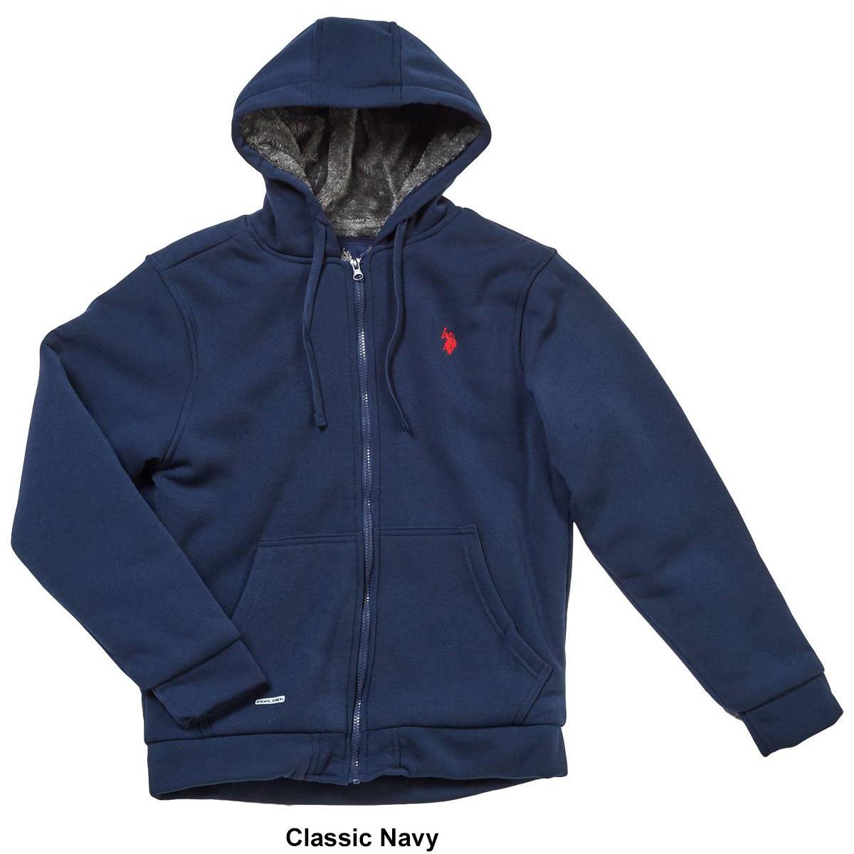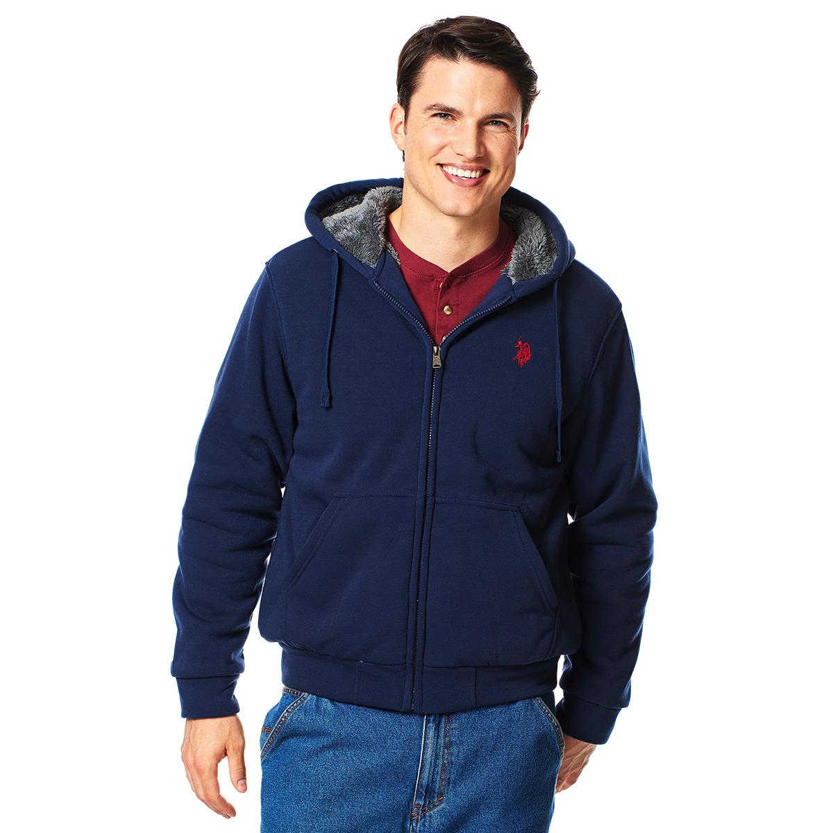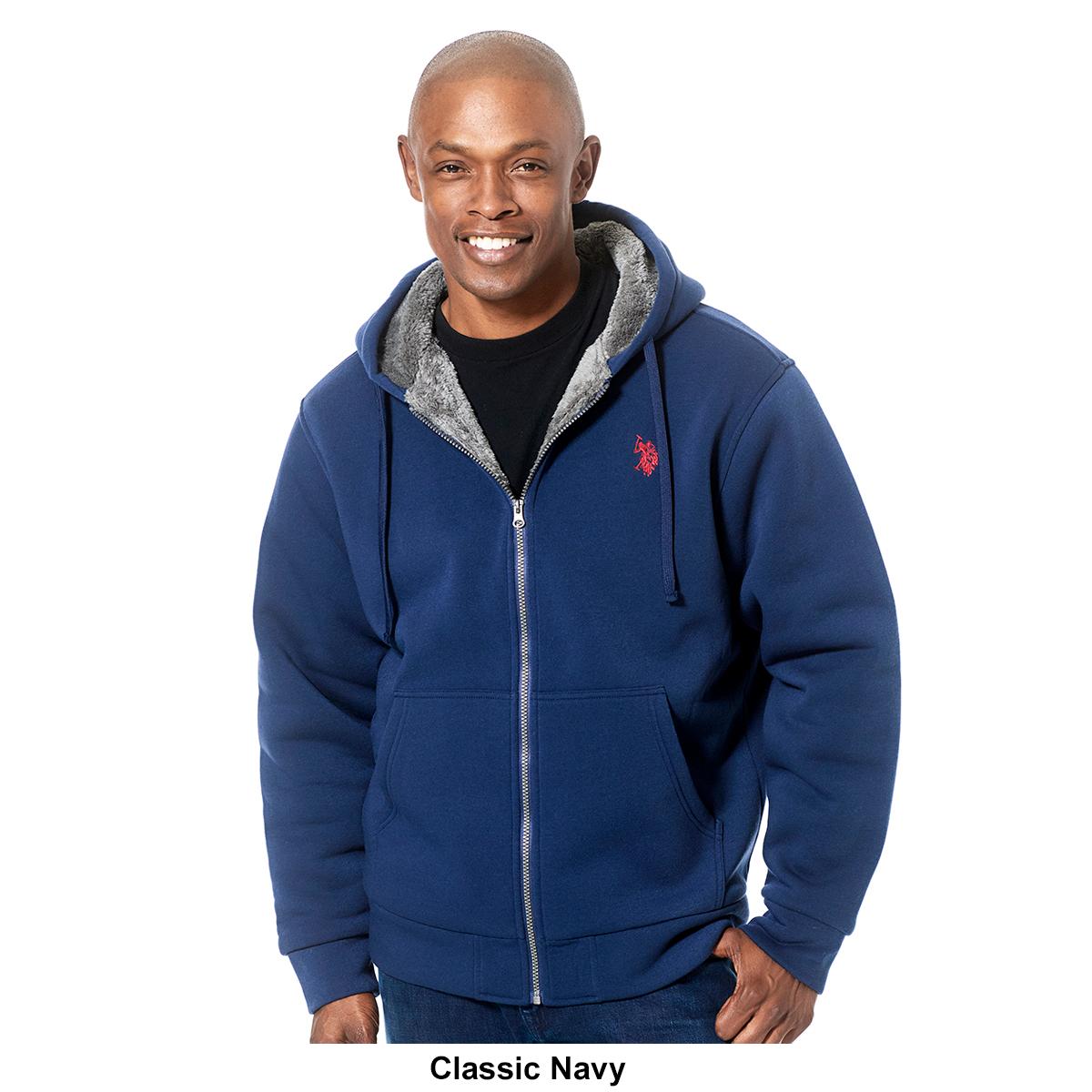 Description Give your look a comfy update with this Mens U.S. Polo Assn.® solid sherpa lined hoodie. Long sleeveFull zip closureDrawstring hoodSplit kangaroo pocketSherpa...
