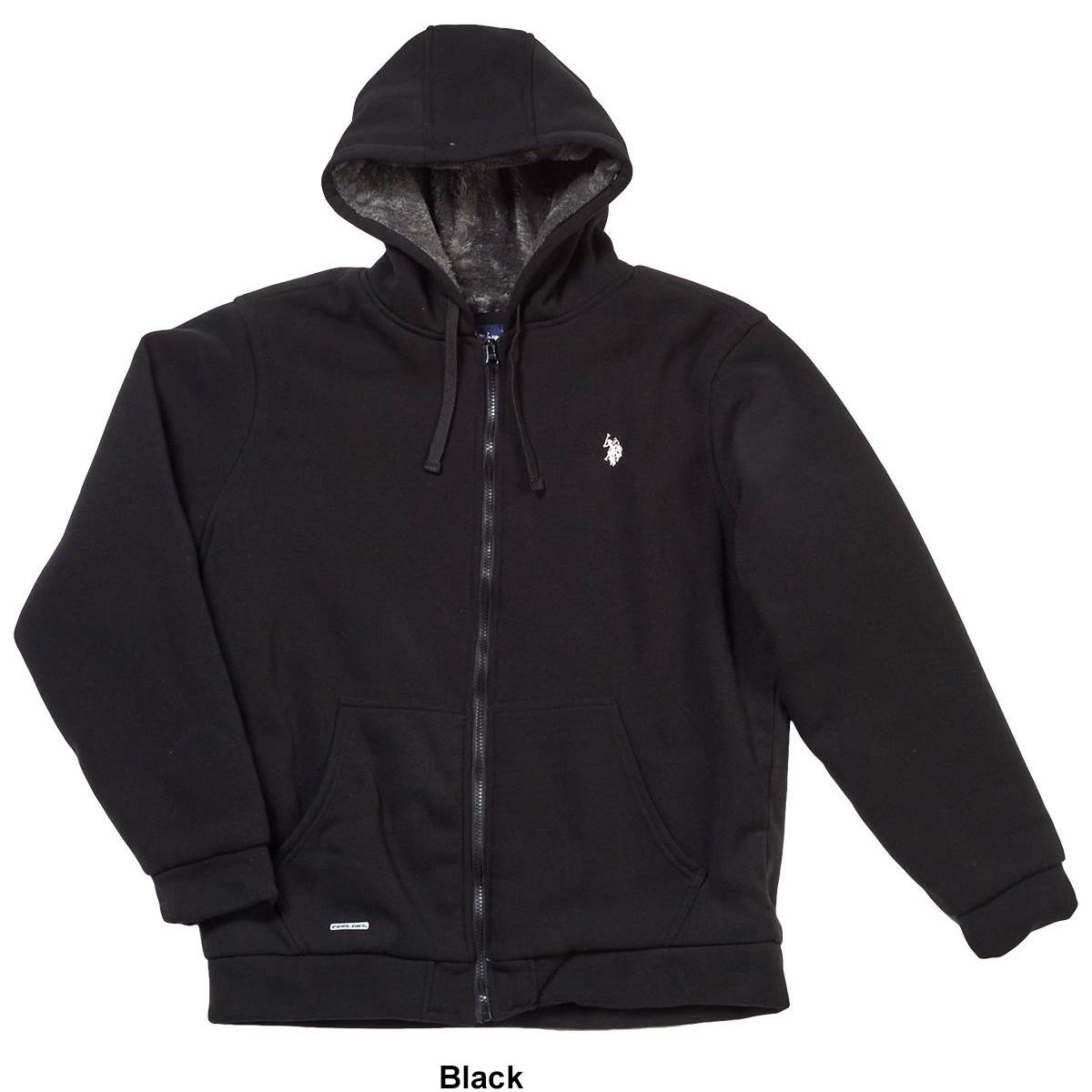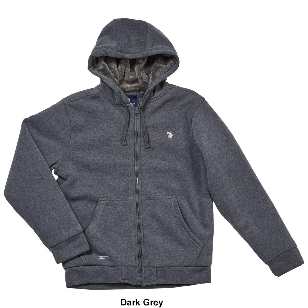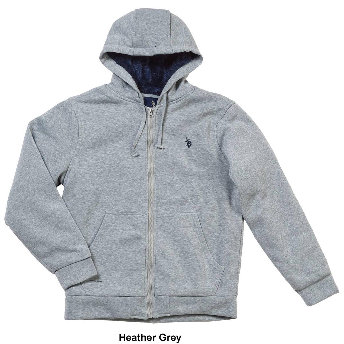 Description Give your look a comfy update with this Mens U.S. Polo Assn.® solid sherpa lined hoodie. Long sleeveFull zip closureDrawstring hoodSplit kangaroo pocketSherpa...