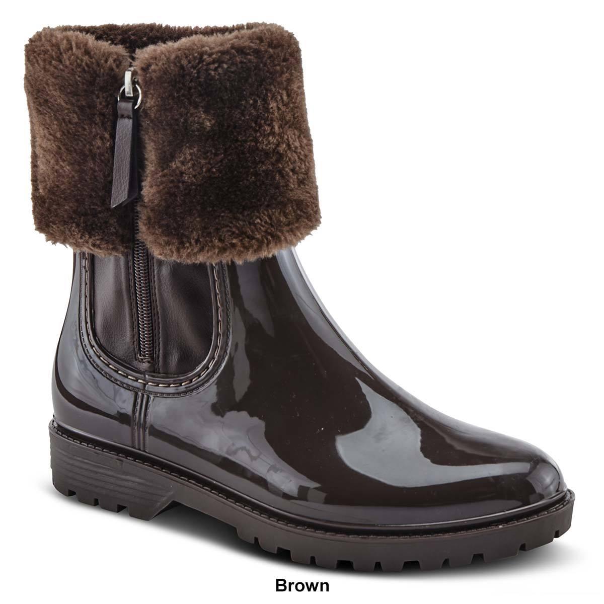 Description Be fashionable and combat the rain with these Womens Spring Step tispea boots. Featuring a faux fur collar for a comfy and warm fit. Perfect for those cold weather...