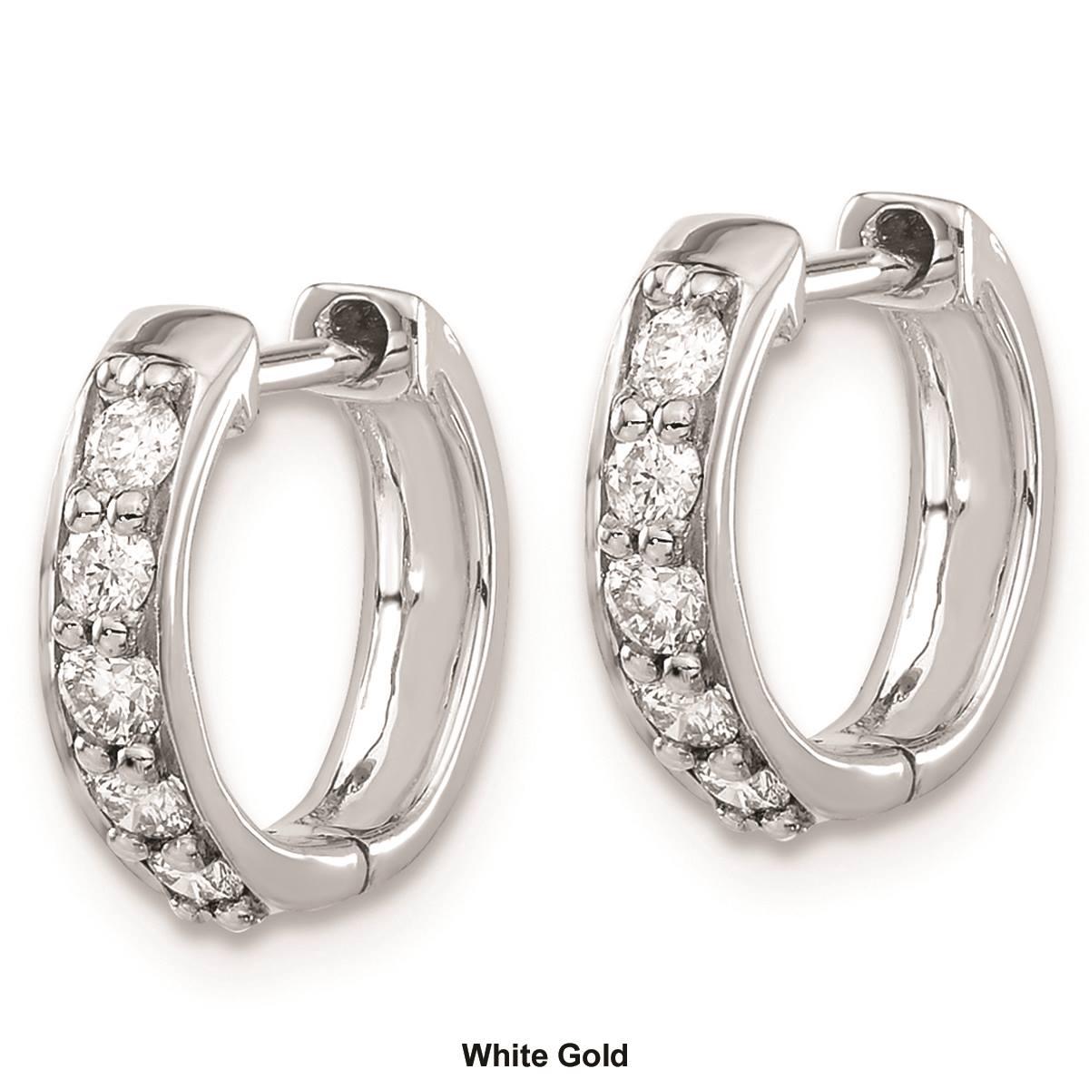 Add subtle elegance to your look with these beautiful lab-grown Pure Fire diamond-hinged hoop earrings. Crafted in 14kt. gold with a gleaming polished finish, these earrings feature round-shaped 0.35 ctw. lab-grown diamonds at the frontside to create a charming look. These earrings are secured with a post, notch, and lock closures for proper hold.