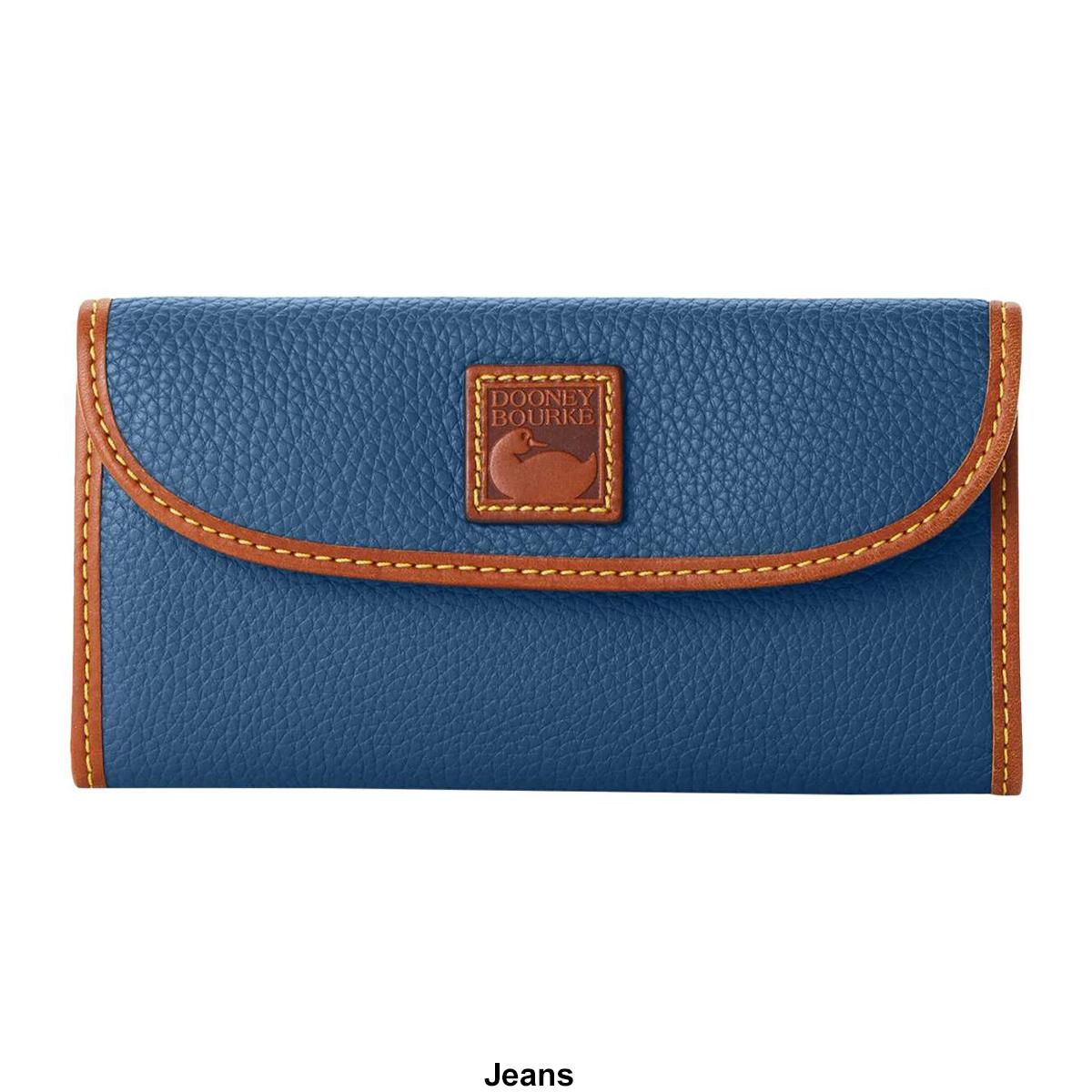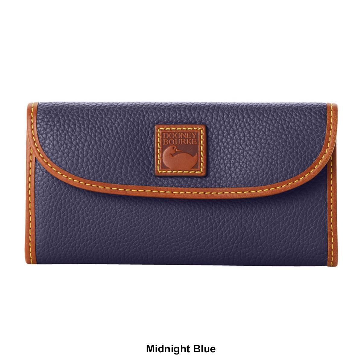 This Womens Dooney & Bourke Continental clutch wallet features an outside zip pocket, two inside pockets, license pocket with window, seven credit card slots, two bill compartments, and a snap closure.