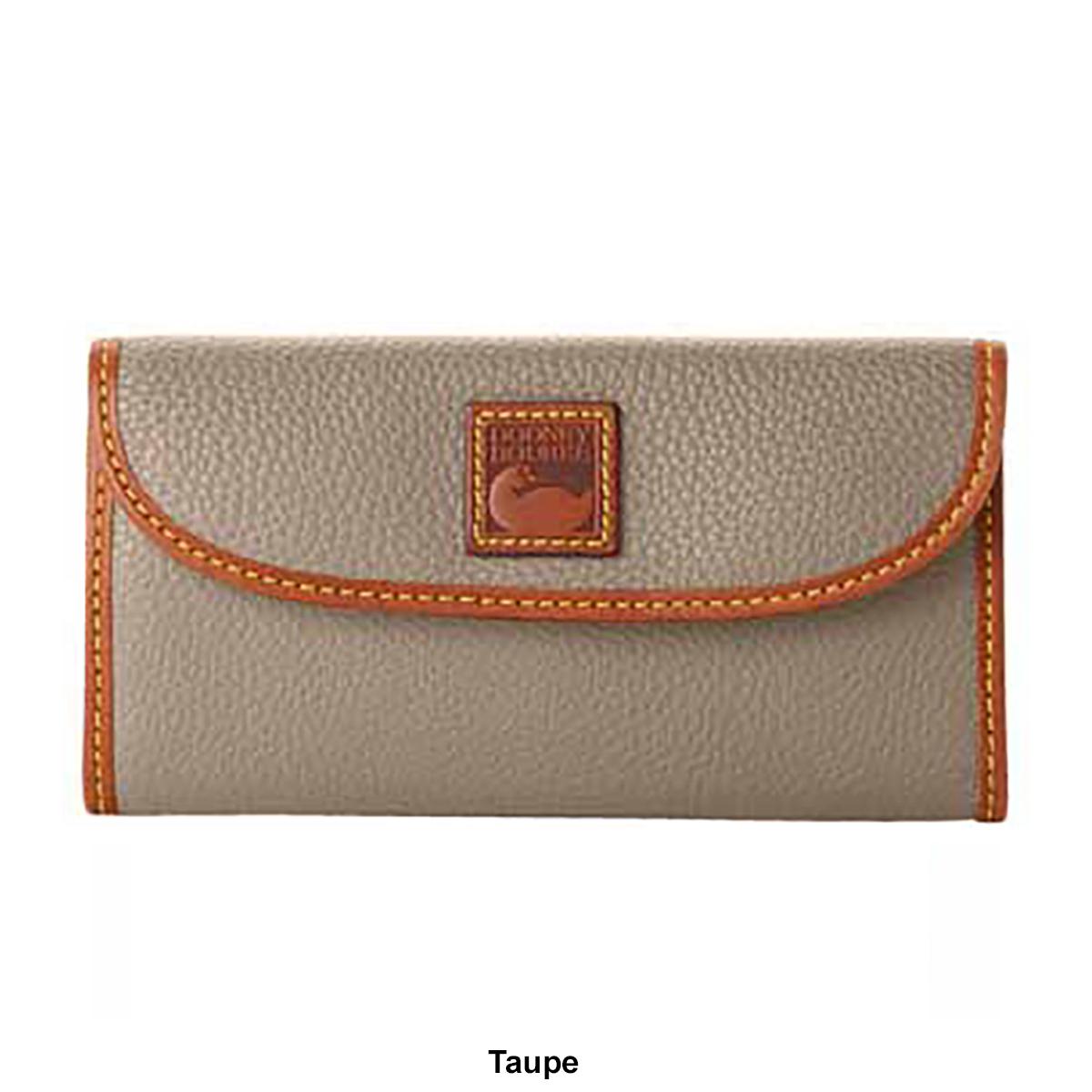 Description This Womens Dooney & Bourke Continental clutch wallet features an outside zip pocket, two inside pockets, license pocket with window, seven credit card slots, two...