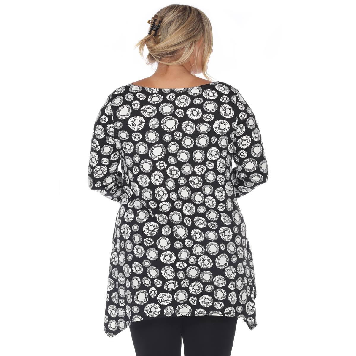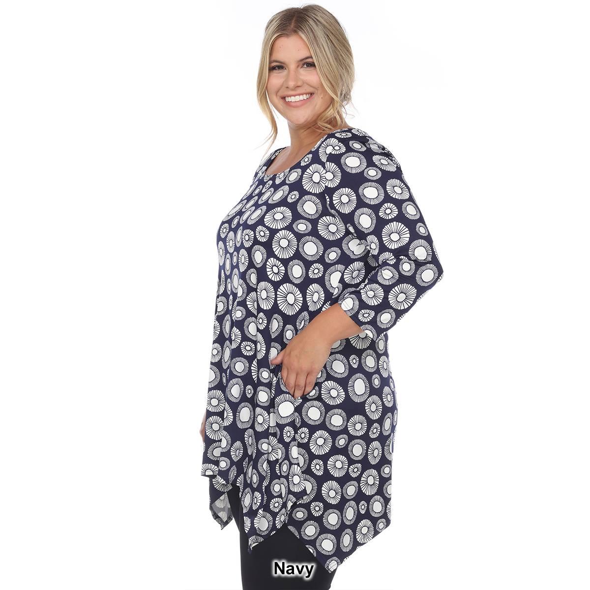 Description Stand out with this Plus Size White Mark printed geometric circle tunic. Features 3/4 sleeves, scoop neck, and shark bite hem. This tunic is so versatile you can pair...
