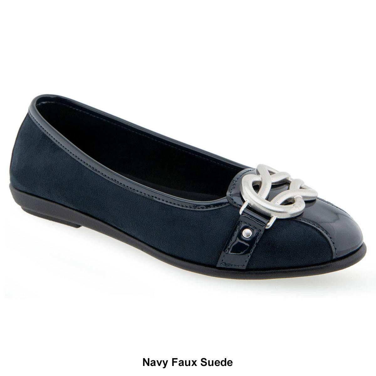 Description Bold hardware sets these Womens Aerosoles Big Bet flats. With a classic style that can be dressed up or down, they’re sure to make an appearance in your work...