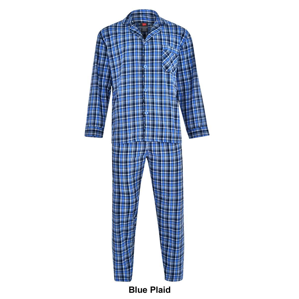 Description Rest easy in stylish comfort with this Mens Big and Tall Hanes Ultimate® plaid woven pajama set. These comfy pajamas feature a button closure top and button closure...
