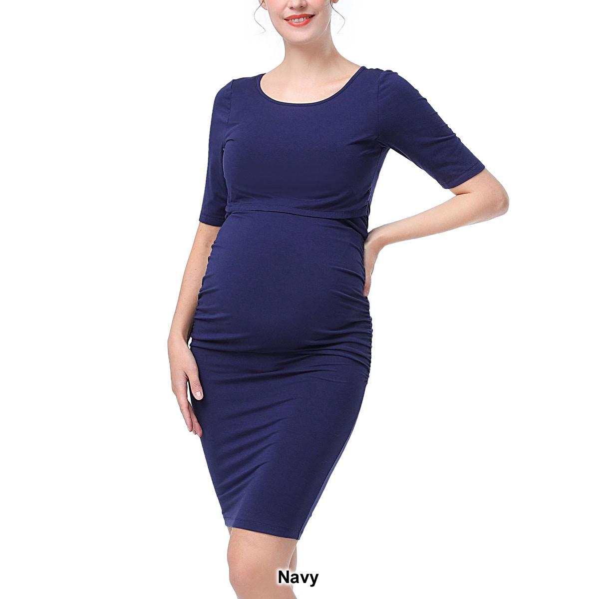 Description This Womens Pokkori by Kimi & Kai maternity tiered nursing dress is simple yet functional. Features belly ruching details and a nursing-friendly feature that allows...