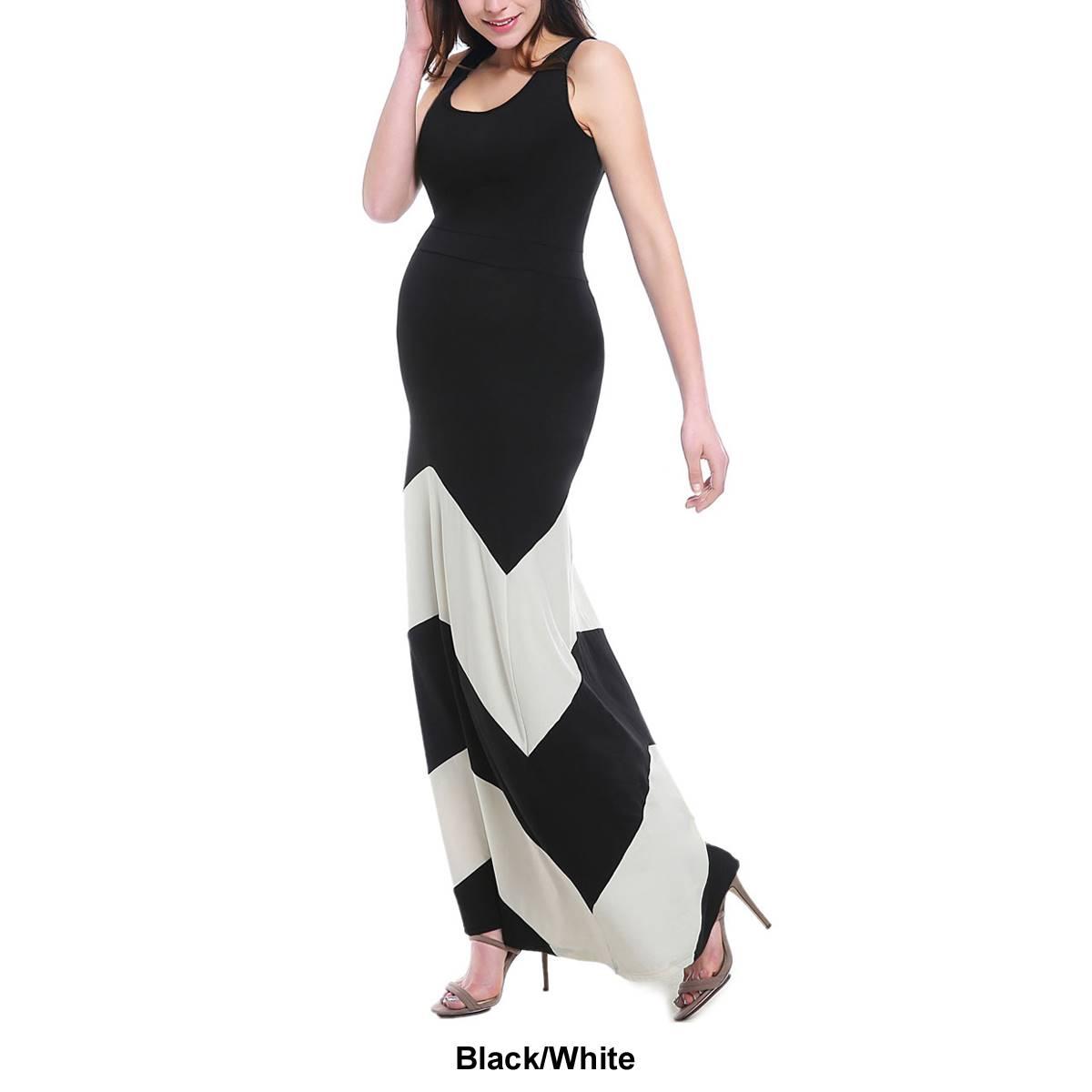 Description Stay comfy and chic in this Womens Pokkori by Kimi & Kai maternity color block maxi dress. Features an asymmetrical color block detail for a trendy look. A scoop...