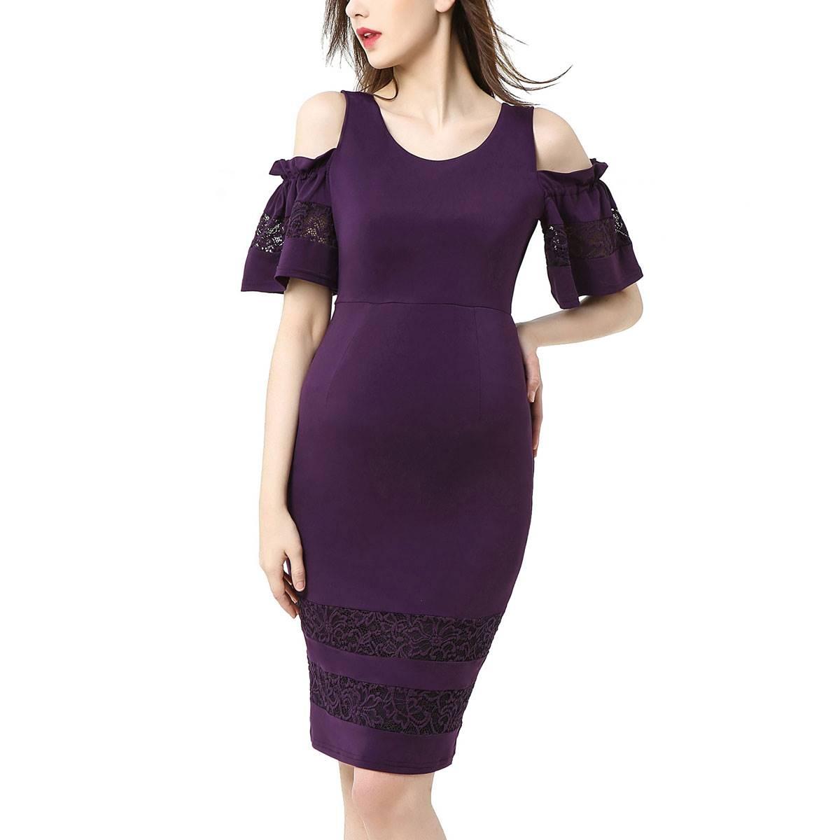 Stay on trend and comfy with this Womens Pokkori by Kimi & Kai maternity cold shoulder sheath dress. Features stripes of inset lace at the hem and cuffs for an added touch of elegance.